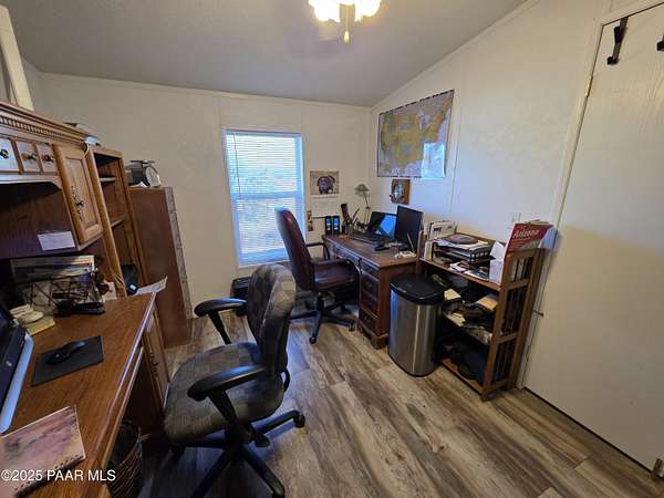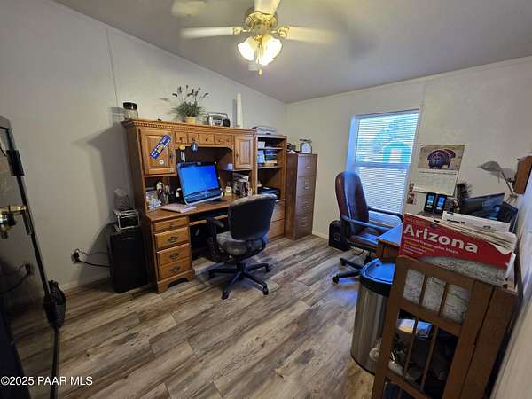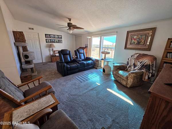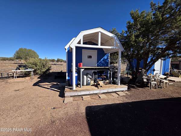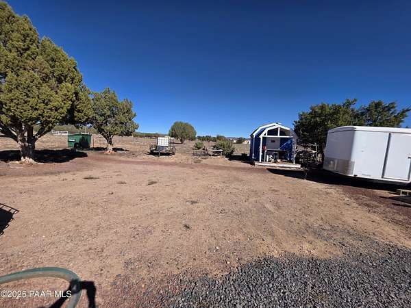 Discover the charm of this meticulously cared-for 3-bedroom, 3-bathroom residence spanning 2,129 square feet across nearly 10 acres of expansive land. Inside, enjoy distinct areas for living, family gatherings, and formal dining, complemented by a huge kitchen with loads of counter space and featuring a handy breakfast bar. The master bedroom offers a private retreat with its own connected office/sitting room, while a dedicated laundry space and mudroom add everyday convenience--ensuring ample room for all your needs.Venture outdoors to explore the standout features of this one-of-a-kind estate, including two versatile outbuildings, a robust 2,600-gallon rainwater collection setup, a matching 2,600-gallon potable water storage for the home, and a 50-amp electrical connection ideal for RV enthusiasts. Secure your livestock or launch a modest venture with the comprehensive boundary fencing plus interior divisions. This setup provides generous indoor and outdoor flexibility, and the terrain is particularly well-suited for equestrian pursuits.Conveniently positioned close to Interstate 40 and Highway 89, it's only a short drive to Ash Fork amenities. Schedule your private showing now to experience it firsthand! Zoning: M2RIL=175 - This property presents opportunities for various commercial ventures, including horse boarding, mini storage, RV storage, and more. Please consult with the County to explore and confirm the available options for your intended use.