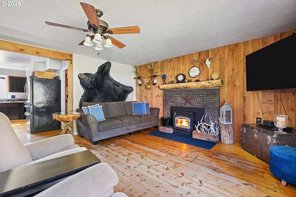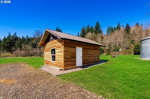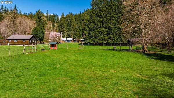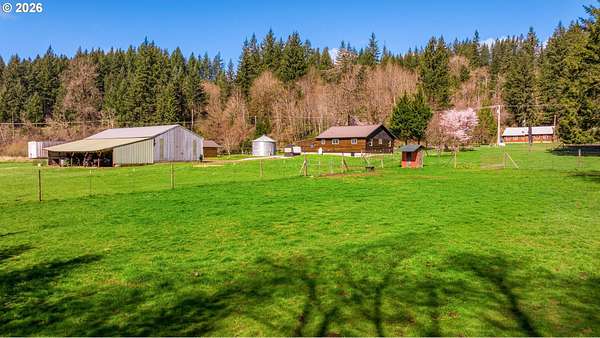 Ultimate homestead in the heart of the Lewis River Recreation Corridor. Surrounded on three sides by 80+ acres owned by the Rocky Mountain Elk Foundation, this property offers unmatched privacy, territorial views, and abundant wildlife including elk, deer, and resident eagles. Three fenced, flat, well-draining pastures support animals and agriculture. Two water sources-a 22 GPM well plus irrigation spring-create true self-sufficiency. Infrastructure includes a 50x70 barn, 24x30 shop, walk-in cooler, butcher room, and canning shed. Entertain in the iconic grain silo bar or relax in the saltwater hot tub. Cozy 2 bed, 2 bath home with tons of character, PEX plumbing (2020), pellet stove, and propane setup. Orchard, berries, and black walnut trees complete the setting. Potential to divide (buyer to verify).