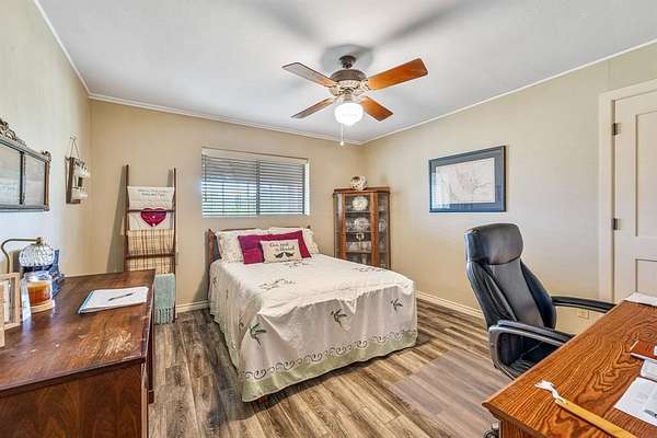 Scenic views surround this 4 bedroom, 2 bath home, nestled in trees and on 5 acres, located in charming Iredell, TX. The 2156 sq ft home was originally built in 1945 and has had several upgrades over the years. Most recently, all new paint and new LVP flooring. The bedrooms are spacious and the master has its own sitting room or reading room and private deck overlooking the rear of the property. Add to that an additional hobby room and huge laundry room and this home has no shortage of space. Parking is plentiful with the 2 car garage, 1 car shop, and tractor barn that you could easily put 4 vehicles under OR convert to that perfect horse barn that everyone needs. There is even a livestock pen, just waiting to be filled. Looking for a tornado shelter? GOT ONE! This home and acreage could be everything you need, and access to Iredell or Hico is super easy with the newly resurfaced highway frontage. Home comes with a 1949 Ferguson tractor with bush hog too!