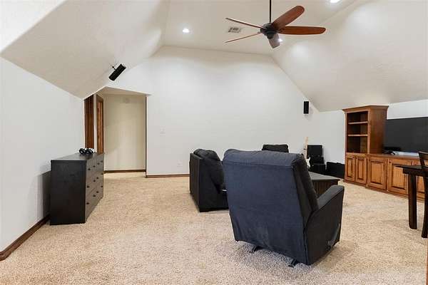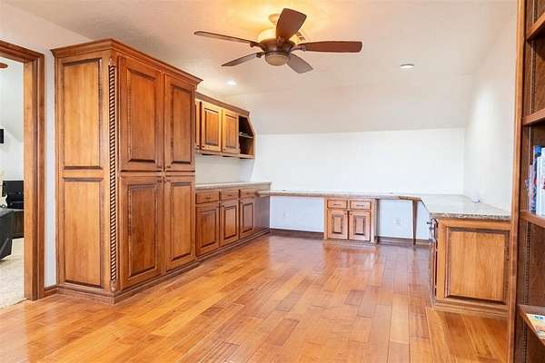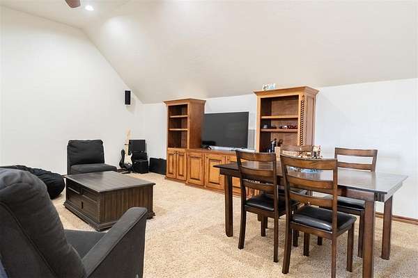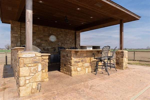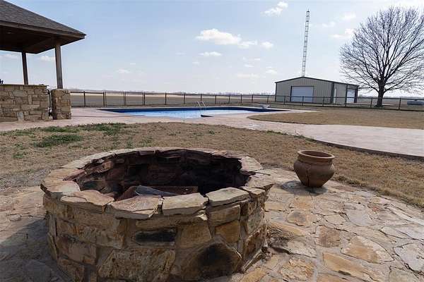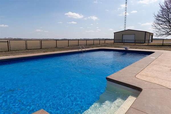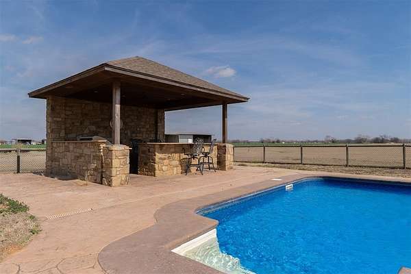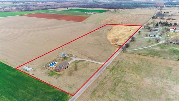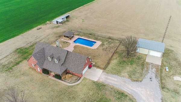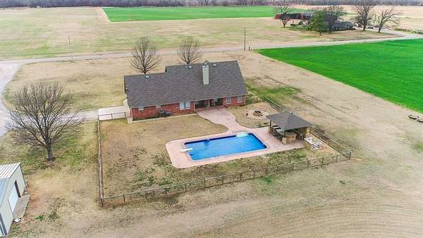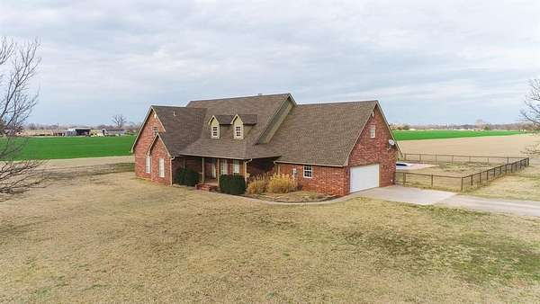 Welcome to your private slice of Oklahoma countryside-12 acres of open space and the freedom to live the lifestyle you've been dreaming of. This luxurious 5 bed, 3 bath home offers an exceptional blend of comfort, function, and rural elegance. The main floor features a spacious family room, formal dining area, and a beautifully appointed kitchen with painted cabinetry. Three bedrooms and two full bathrooms are located downstairs, including an oversized primary suite with a large walk in closet and a spa like ensuite bathroom. A two car garage, mud room, and dedicated laundry room add everyday convenience. Upstairs, an impressive office/library showcases custom-built cabinetry and bookshelves. An oversized living area provides the perfect space for a kids' game room or media lounge, accompanied by two additional bedrooms, a full bathroom, and multiple storage areas. Outdoors, the property truly shines. Enjoy beautiful views in every direction, lush Bermuda grass ideal for grazing or hay production, a 30x40 shop with concrete floors and electricity, an underground storm shelter, and a livestock show barn complete with a cool room and storage. The fully fenced backyard is a showstopper-featuring an inground saltwater pool with diving board, fire pit, and a full outdoor kitchen with built in gas grill and bar. It's an entertainer's dream and the perfect setting for gatherings with friends and family. It's nearly impossible to find a family home this impressive, with beautiful land and privacy to match. Call us today about your private showing.