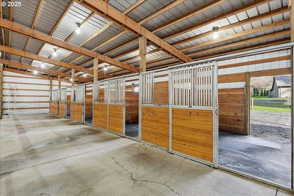 This custom single-level home sits on 2 acres in Boring, combining elegant living spaces w/exceptional equestrian amenities! This 3,120 sq. ft. home features 3 bedrooms, 2.5 bathrooms, an office, & a bonus room! Luxury vinyl plank flooring & vaulted ceilings in the living room create a bright, open atmosphere throughout the home. The kitchen is designed for both daily living & entertaining w/ granite countertops, beechwood cabinetry, an oversized island, stainless steel appliances, vaulted ceilings, a large pantry, & a dining nook w/direct patio access. A formal dining room & a laundry room w/utility sink, washer/dryer complete the functional layout. The primary suite includes not one but TWO walk-in closets, double sinks, a soaking tub & private access to the back patio! The equestrian facilities are a standout feature of this property. Built in 2020, this 96x144 barn is built to impress! The barn includes 72x144 indoor riding arena, 6-12x12 tongue & groove stalls that are fully matted, plumbed for automatic waterers & feature drainage beneath the mats. Each stall with its own 12x50 paddocks w/end stall being 36x50 in size. Additional features include a 12 ft concrete aisle, hay storage bay featuring sliding doors & a floor drain suitable for an optional wash rack. Insulated tack room w/power outlets, and LED lighting throughout. 12 ft doors in the arena offer the ability to keep has horse heaven or easily convert to a massive shop perfect for your RV & hobbies! Next to the barn is a 4-bay 48x15 lean-to that provides additional covered storage with a water spigot and electrical access. Recent upgrades completed in 2025 include a newly paved driveway, a 4-rail pressure-treated fence, and a freshly hydroseeded yard, giving the acreage a clean, finished look. This property is exceptional, offering a rare combination of thoughtfully designed living spaces, expansive equestrian facilities, and beautiful acreage in a sought-after location!