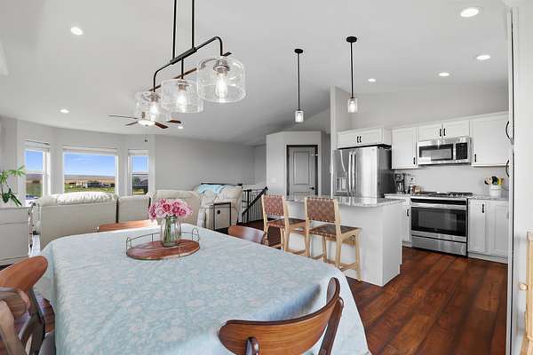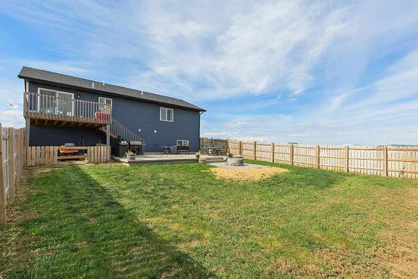 Listed by Cody Brown, Engel & Voelkers Black Hills, 402-910-3553. Split-foyer single family home in the Royal Run subdivision, situated on 3.6 acres and built in 2020. The upper level features an open concept living room, dining room, and kitchen, along with the primary suite which includes a private bathroom and walk-in closet. There is one additional bedroom and one additional full bathroom on the upper level as well. The lower level includes a spacious family room, two more bedrooms, and another full bathroom. The upper level walks out to a deck with steps down to a stamped concrete patio, an additional concrete pad, and a custom concrete firepit. The yard surrounding the house is fully fenced with a privacy fence for added enjoyment and peace of mind. Horses are permitted on the property, offering great flexibility for rural living while still being close to town. New roof as of 11/2025!