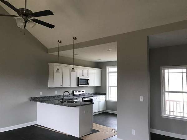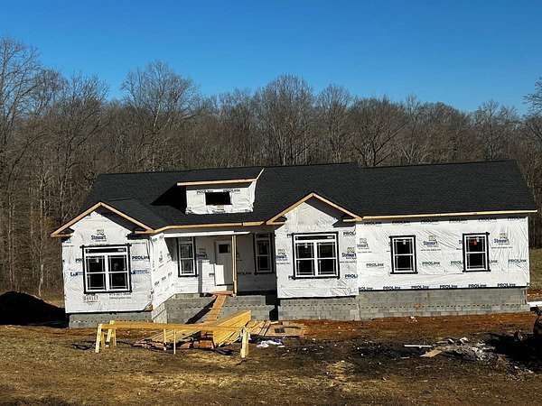 Est $2,196/moNew construction -one level home situated on a spacious 2.52 acre lot. Features include a covered front porch, rear deck, open floor plan with great room featuring a natural gas fireplace. Kitchen has granite countertops and stainless appliances. Additional highlights include a tankless water heater and a 2 car attached garage. Pictures shown are the same floor plan of another house that was built in a different location.
