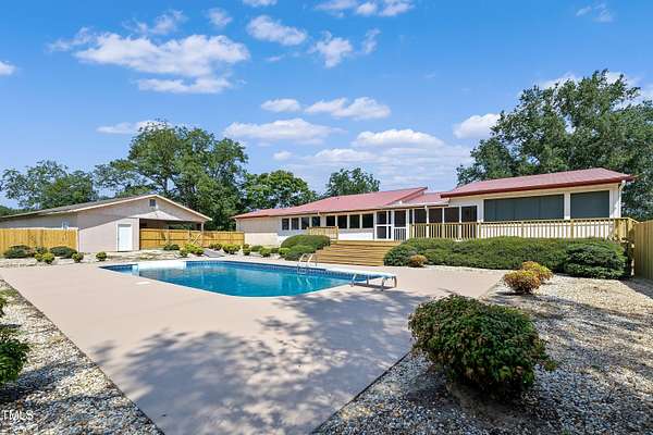 $5000 Concessions for Buyer! Escape to peaceful country living with this 3 bed, 2 1/2 bath ranch home, situated on approximately 2.5 acres of unrestricted land! Enjoy the freedom of NO HOA and endless possibilities on your property. Open living, dining and kitchen awaiting your updates and personal touch. Be prepared for the cool fall evenings on the brand new expansive deck, and fenced backyard. New pool liner installed for next summer's pool parties and bbq's. Have a project or want a covered workspace - head over to the 1600+SF workshop to enjoy your separate space. 26 x 25 storage building surrounded by sheltered area. HUGE Owner's suite. Private office, Large utility room with half bath, Sunroom, 19.4 x 10.7 Screen porch, .......This home has so much offer!