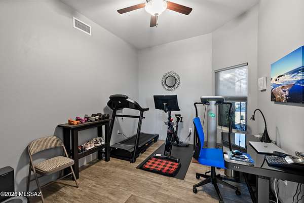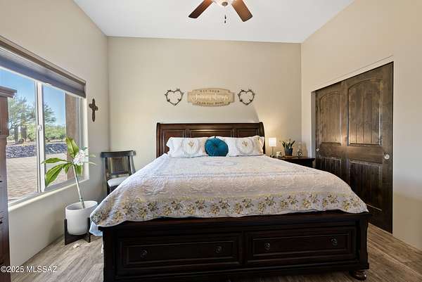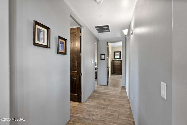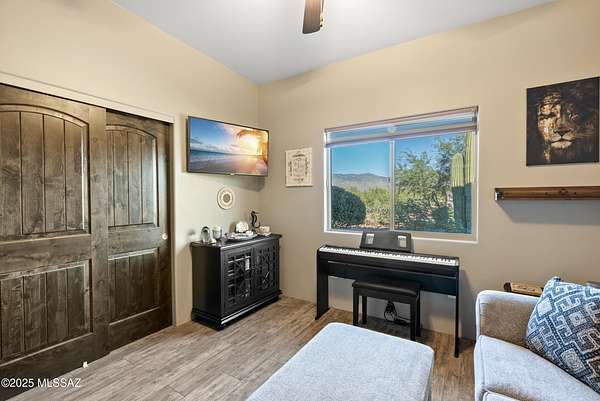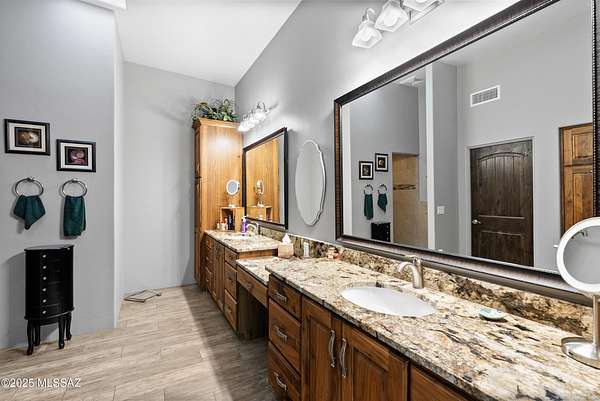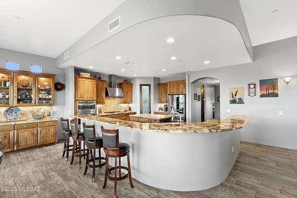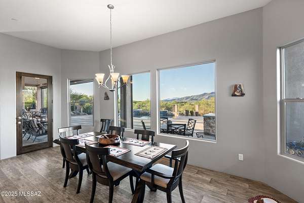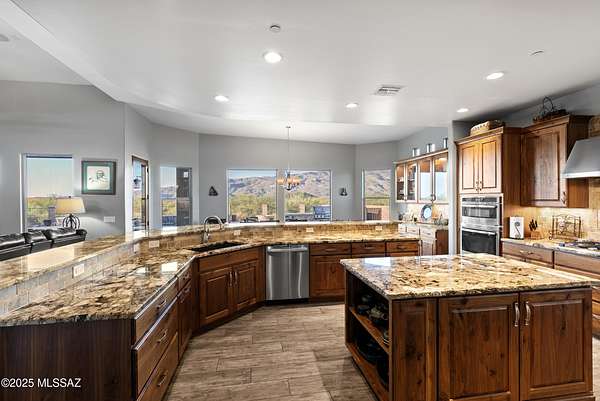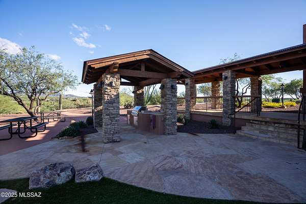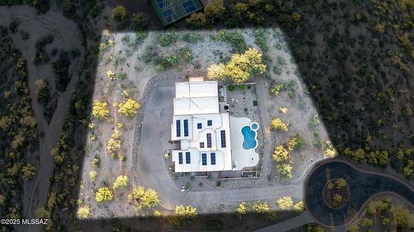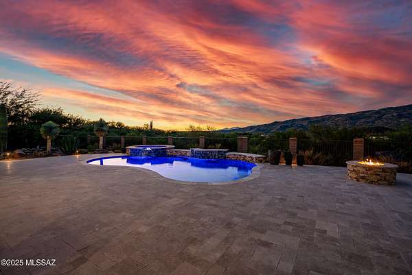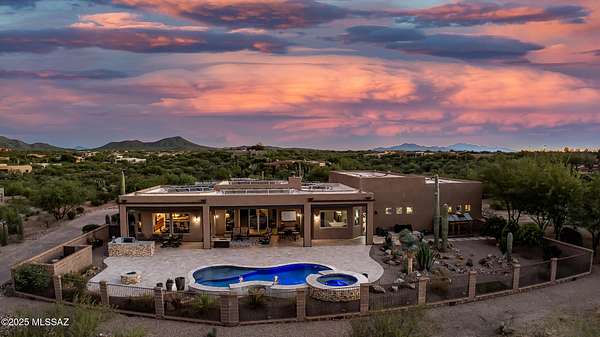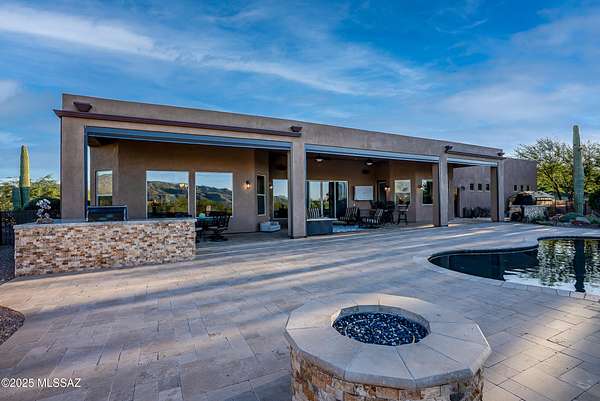 Experience true luxury in this Coyote Creek custom home featuring a heated saltwater pool and spa, travertine patio, and a full outdoor kitchen with dual-fuel BBQs, quartz counters, and fire pit. Inside, enjoy tile and natural stone finishes, granite counters, Monogram appliances, and surround sound in the living room, primary suite, and patio. The home includes a three-car garage with a fully integrated 2,000 sq ft climate-controlled shop and office. Paid solar, 400-amp service, and upgraded systems complete this energy-efficient desert retreat. See documents for full list of features. Welcome to 15070 E Triangle Z Ranch Place, a showcase of luxury, efficiency, and craftsmanship in the gated community of Coyote Creek in Vail, Arizona. This 2019-built custom home offers approximately 2,691 square feet of living space on a 1.67-acre lot, blending natural beauty with modern design. It stands among the finest properties in Southern Arizona, designed for those who value both elegance and purpose. The home welcomes you with a grand double-door entry and open-concept layout that connects indoor and outdoor living. Tile floors accented with natural stone finishes flow throughout the main areas, while expansive windows frame sweeping desert and mountain views. The great room features a gas fireplace and a built-in surround sound system that extends to the primary suite and covered patio, creating a seamless entertainment experience throughout. The kitchen is the heart of the home and a true chef's space. Solid wood cabinetry, granite countertops, and professional-grade Monogram appliances make this space both functional and beautiful. The 16-foot breakfast bar with soft-close drawers, spice racks, and pull-out storage adds convenience, while the large refrigerator remains with the home. The open layout connects to the dining area and patio for effortless entertaining. The primary suite offers resort-level comfort with remote-controlled shades, integrated audio, and a serene view of the pool and backyard. The en suite bath features dual vanities, a seated makeup area, a linen closet, and a custom snail-style walk-in shower designed with natural stone. Every element speaks to the home's focus on quality materials and thoughtful design. Additional bedrooms include a full guest room with a tile-surround bath and a private guest suite with a half bath. A separate den with French doors provides flexible use as a home office, media room, or library. The outdoor spaces are designed for both relaxation and entertainment. The heated saltwater pool and spa, completed in 2025, are surrounded by travertine decking, while the covered patio includes fans, an outdoor TV, and a complete sound system. The outdoor kitchen features both gas and Santa Maria-style wood BBQs, a built-in oven, quartz countertops, and abundant storage. A custom gas fire pit, fruit orchard, and mature desert landscaping complete the experience. The lot is partially fenced and designed to manage water flow efficiently, combining privacy with function. A defining feature of this home is the integrated three-car garage and 2,000-square-foot climate-controlled shop built within the home's structure. This exceptional space includes 200-amp service, multiple 220V outlets, extensive lighting, air systems, and four mini-split units. A private office with its own bathroom, ceiling fan, and TV wiring makes it ideal for home-based business, hobby work, or RV storage. The shop's oversized roll-up access and automatic locking system make it as secure as it is functional. The property's systems are designed for performance and peace of mind. Paid solar with 46 panels dramatically reduces utility costs. A 400-amp electrical panel supports high-demand equipment and appliances. The home features two HVAC systems, two furnaces, a new water heater installed in 2025, a water softener, and a completely upgraded septic system with dual leach lines and a new pump system valued at $20,000. The roof w