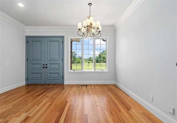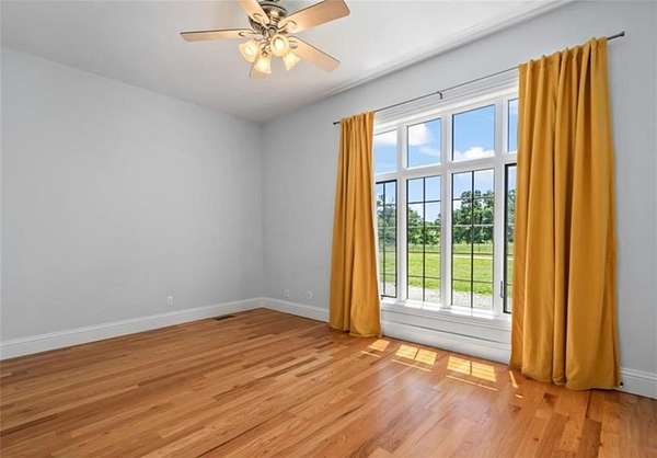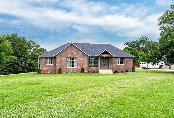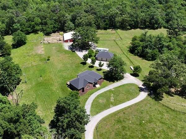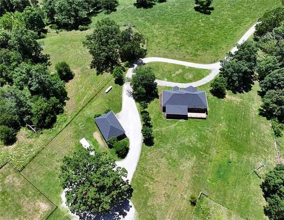 Beautiful home with gourmet kitchen, hardwood floors and high ceilings! Home is set off the road on a small 10+ acre ranch, perfect for horses or cattle. Private and quiet setting in the country. Perfect get away from the hustle of the city but a super short drive to get on the interstate, which makes you close to everything. Property has a large very nice pole barn for implements and farm related items, also has fencing and a corral. The three car garage is close to the house for ease of parking. Also has another outbuilding for storage. If you're looking for a modern home in a quiet country setting, this is the perfect location for you!