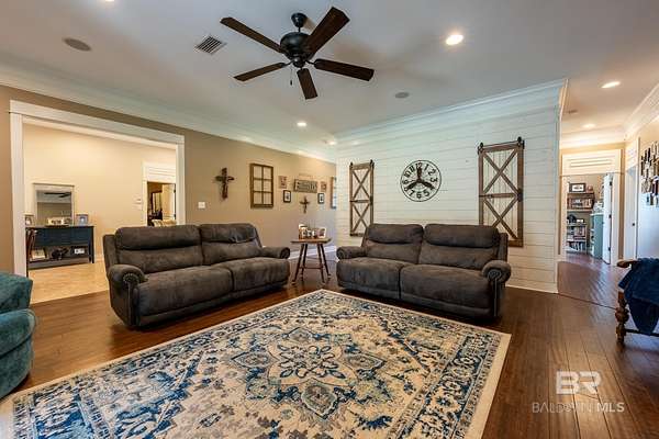 Spacious Home on 3+ Acres in Sought-After Loxley Location - No HOA! ?Welcome to this beautifully maintained 3,200 sq. ft. home tucked away on just over 3 acres in one of Loxley's most desirable neighborhoods. Offering space, privacy, and convenience, this property is truly a rare find.Inside, you'll find 3 bedrooms plus a huge upstairs bonus/4th bedroom with its own full bath, making it perfect for a guest suite, media room, or game room. In total, the home boasts 4 full bathrooms, including a convenient Jack & Jill bath for guest rooms.The heart of the home features spacious living areas and a well-designed floor plan, including a small office, perfect for both everyday living and entertaining. Step outside to enjoy the large back porch, deck, and covered gazebo - ideal for gatherings or quiet evenings.Car enthusiasts, hobbyists, or anyone in need of extra space will love the pole barn with power and water plus an attached shop with a full bathroom and roll-up garage door.Located just minutes from the interstate, this property offers a peaceful retreat with easy access to everything Baldwin County and the Gulf Coast have to offer. Buyer to verify all information during due diligence.
