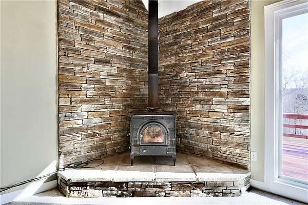 - Attic, Built In Features, Cathedral Ceilings, Eat In Kitchen, Split Bedrooms, Walk In Closets, Window Treatments, Wood Burning Stove