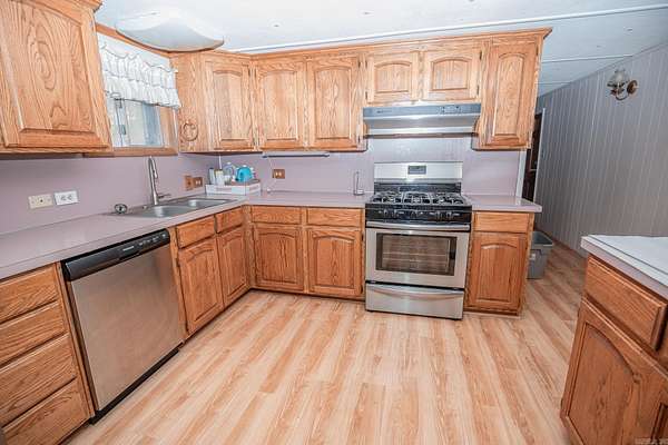 This adorable 3br/ 2ba home sits on nearly 4 acres in a quiet little subdivision on the outskirts of Pine Bluff with no restrictions. It is back on the market at no fault of the seller or home and is priced to sell! This is peaceful country living at it's finest. The separate garage/workshop has a new metal roof and is perfect for your boat and for tinkering! There is a storage building on the property with electricity as well. This home comes with an almost new gas-powered generator that automatically comes on when the power goes out! The roof is less than 10 years old. The heat and air unit is 6 to 7 years old and was just recently serviced. The gas stove is fairly new and the dishwasher is brand new! Brand new carpet in the den and bedrooms. Laminate in the rest of the house was installed 5 years ago, but still looks brand new. This home is very well maintained. It's an older mobile home that has been added on to. It will be cash or in-house financing only. Proof of funds are required before showing. Call today to schedule a time to go look!