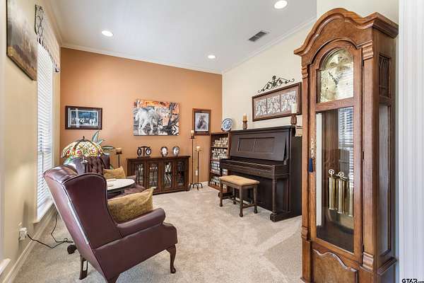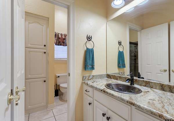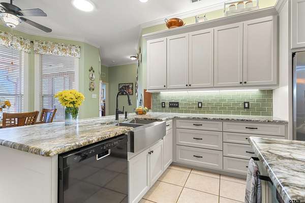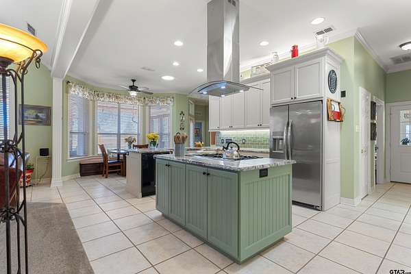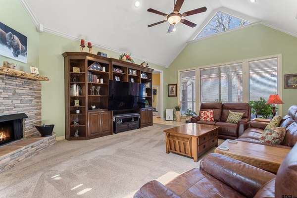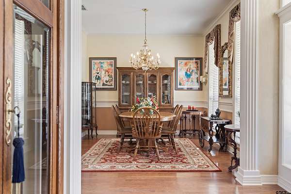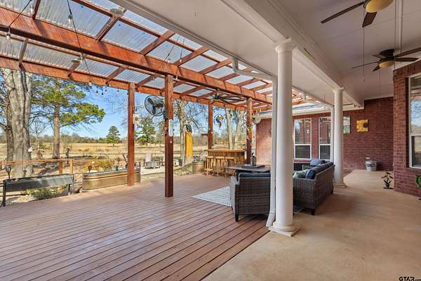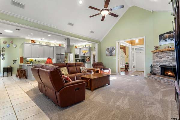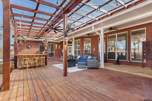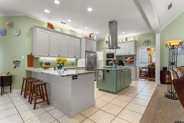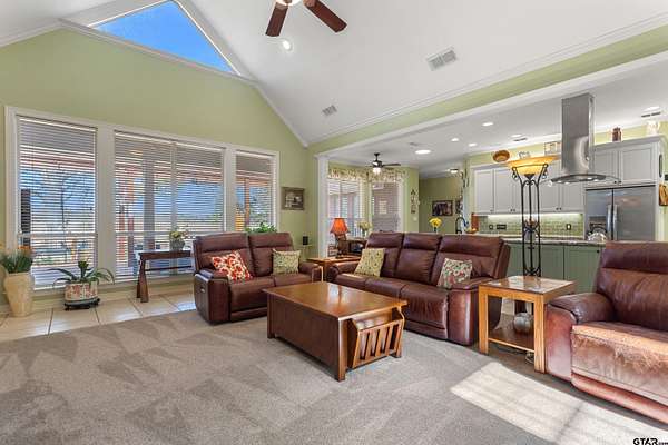 A gated, ag exempt estate on 12 acres with an almost 3 acre stocked fishing pond, extensive updates, and pricing below recent appraisal. Located in Flint, this property offers land, quality construction, and long term value. Appraised in February 2026 at $1,320,000 and priced below appraisal, this ag exempt estate offers privacy, function, and careful upkeep throughout. The home includes approximately 3,485 square feet with 4 bedrooms and 3.5 baths, multiple living areas, and flexible spaces for daily living and entertaining. Above the garage is an additional 950 sqft bonus room. The remodeled chef's kitchen features custom cabinetry, granite countertops, Monogram gas range and microwave, dual trash drawer, and tile backsplash. The living area includes a custom faux stone fireplace with bespoke mantle and ventless gas log system. Updates include solar tubes, updated lighting, fresh paint, and new flooring. The primary suite includes an updated bath with rock walk in shower with three shower heads, granite counters, updated cabinetry and sinks, a freestanding tub set on rock flooring, and ceiling fan. Guest baths feature tile walk in showers, granite counters, copper sinks, and updated fixtures. The bonus room has a sink and counter space, a bathroom, sealed wood stairs and offers flexible use that could serve as a private guest or mother in law suite. Outdoor features include a covered wood deck, flagstone walkways, a bridge over a seasonal creek, native East Texas landscaping, fruit trees, and berry plantings. A stocked almost 3 acre fishing pond with lighted dock and windmill aeration anchors the setting. Established Purple Martins provide natural insect control. Additional improvements include a 24x40 metal shop on slab, basement workshop, new roof and gutters, new window screens, replaced ceiling fans, three new water heaters, sunroom roll up shades, security gate and alarm system, and an approximately 490 foot water well. Call for a showing today!