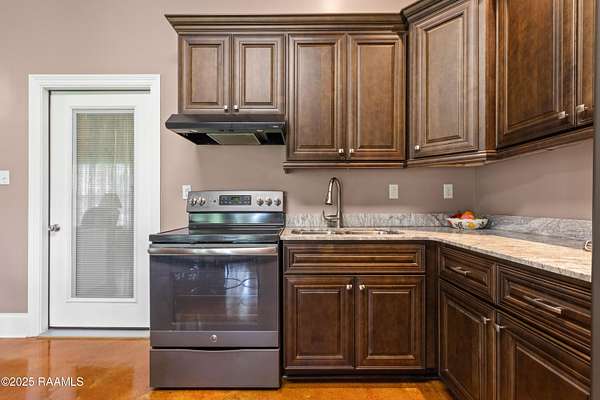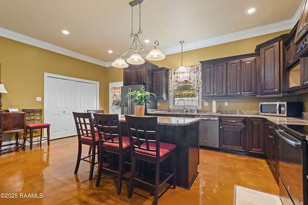 Over 7 acres of beautiful property! Stylish 2 bed, 2 and a half bath country barn dominium with additional private in-law suite - that can be used as a 3rd bedroom! Escape to the perfect mix of countryside serenity and modern convenience in this stunning barn dominium, tucked away on beautiful land just minutes away from the Youngsville Sports Complex, local restaurants and more. Step inside to polished stained concrete floors that run throughout the home, offering durability and modern appeal. The open living and kitchen area is perfect for gatherings, featuring granite countertops and a functional layout. Each bedroom is a private suite, complete with its own full bathroom and walk-in closet, offering comfort and privacy for family or guests. The attached mother-in-law suite includes a private entrance, full kitchen, half bath, and comfortable living area - perfect for guests or your future pool house! Step outside to enjoy peaceful surroundings and wide-open views from both the covered front patio and covered back patio-ideal spots for relaxing or entertaining. The backyard offers the perfect space to add a pool and entertainment area, making it an ideal canvas for your dream outdoor lifestyle. Property also includes a 21 x 24 storage/workshop for extra toys or hobbies! Don't miss your chance to enjoy a true country living while still having the convenience of being close to all the amenities you need. Whether you're looking for a private retreat, flexible living space, or a quiet place to call home, this one-of-a-kind property delivers.