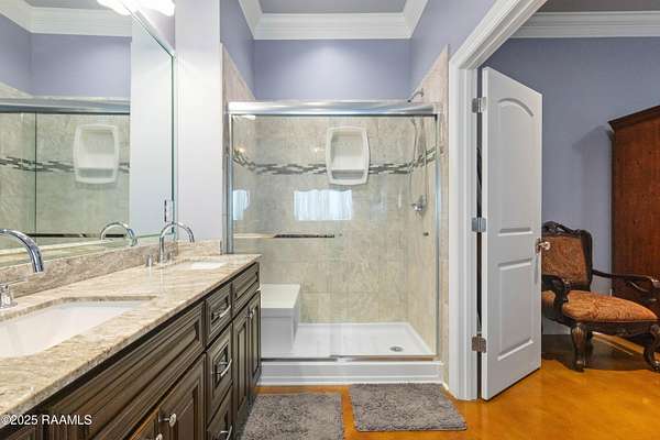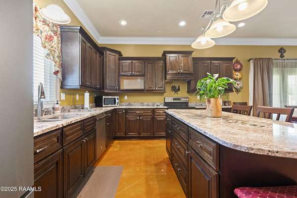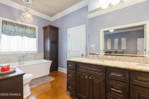 - 9+ ft Ceiling, Attic Access, Crown Molding, Double Vanity, Electric Dryer Con, Electric Stove Con, Electric Washer Con, Garden Tub, Guest Suite, Handicap Acc, Primary Bath, Separate Shower, Standalone Tub, Walk-In Closet(s), Walk-In Pantry, Window Treatments