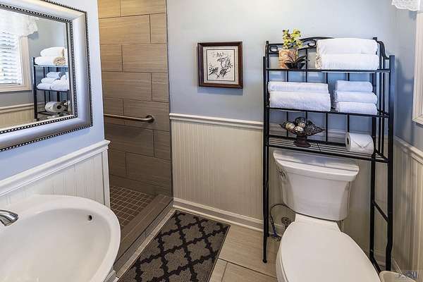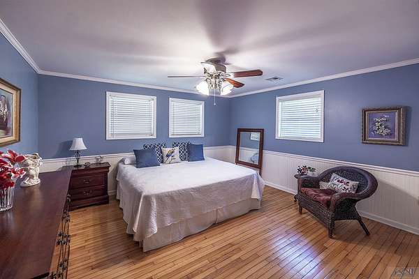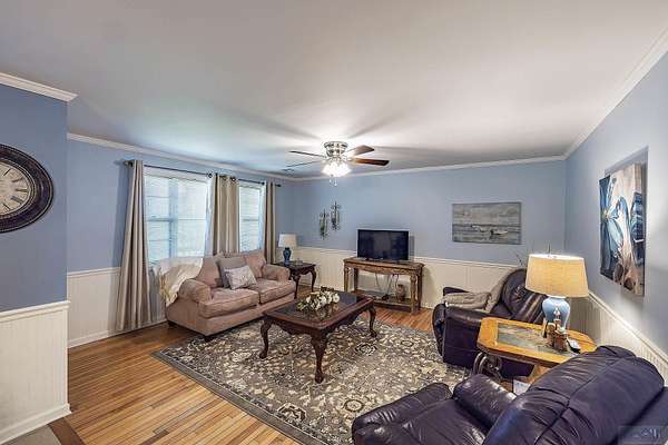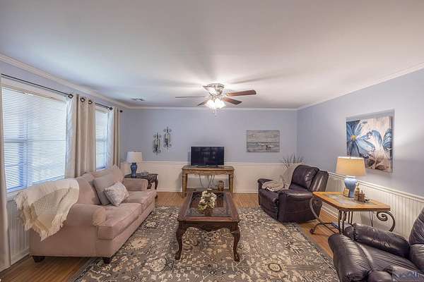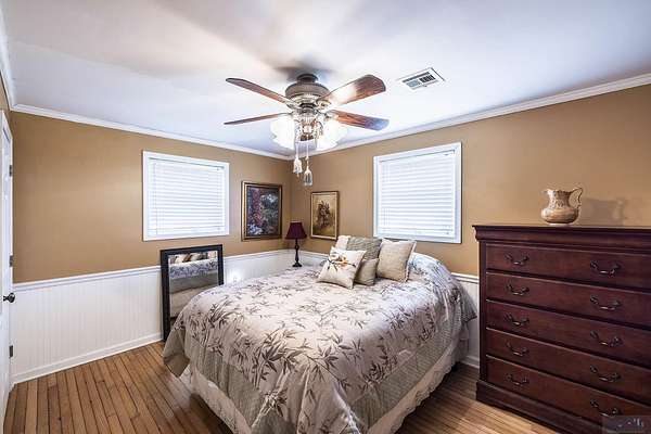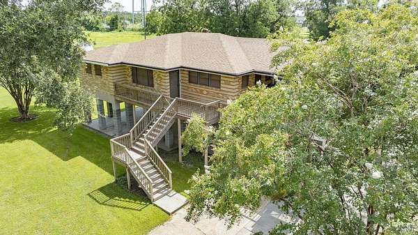 This delightful home is nestled on 1.7 acres of serene bayou-side property, adorned with 9 mature pecan trees. The house features 3 bedrooms and 2 baths, with oak wood and Old Chicago brick floors adding warmth and character. Recent upgrades include a new roof (2022), HVAC system (2023), and sewer treatment plant (2024). The home is elevated 11 feet by Orleans Shoring, using a grant, and includes a human-grade elevator for convenience. The expansive eat-in kitchen boasts granite countertops, maple cabinets, and a new dishwasher, with a soft palette of colors throughout the home creating a calm atmosphere. Additional highlights include a detached double garage with motorized doors, a 50-gallon water heater, a large porch with triple-treated stairs and stainless steel screws, ambiance LED lighting underneath the home, and ample storage space. Home is being sold As Is. Buyer to verify flood zone and all measurements to be verified.