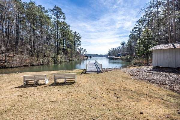 Rare Opportunity: 6.69 DEEDED Acres on Lake Harding. Escape to total privacy on one of Lake Harding's few deeded properties, offering a level of seclusion that is nearly impossible to find. This 3-bedroom, 2-bathroom home spans 2,111 sq. ft. and features a classic wraparound porch, a spacious living area, and a bright sunporch. The property's standout feature is the exceptionally flat waterfront lawn, providing an effortless stroll to your private dock and the perfect natural footprint for a lakeside pool. While the home is solid, comfortable, and move-in ready today, it offers the "great bones" and architectural canvas required for a high-end luxury transformation into a premier lakefront estate. Complete with a massive garage/workshop with 4-car capacity for all your boats and lake toys, this is more than just a home-it is a private legacy property waiting for your personal touch.