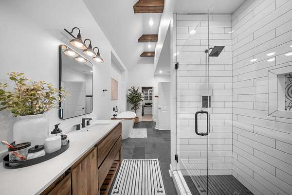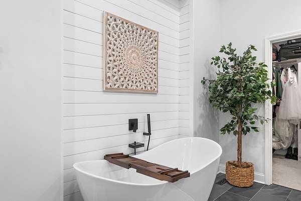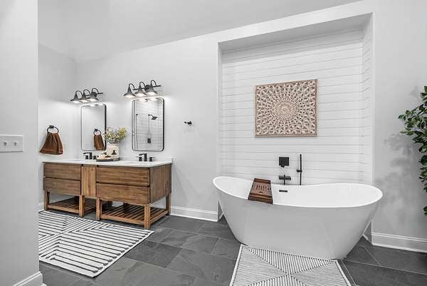 Tired after a long day? Retreat to your spa-like primary bathroom with a large soaking tub and tiled shower.