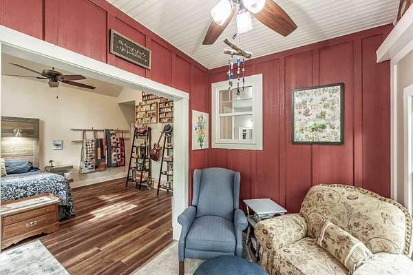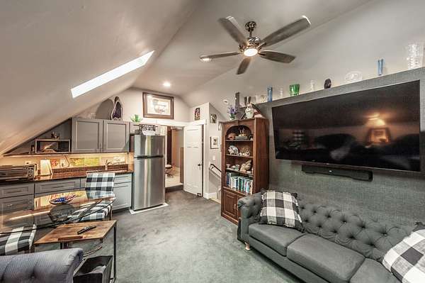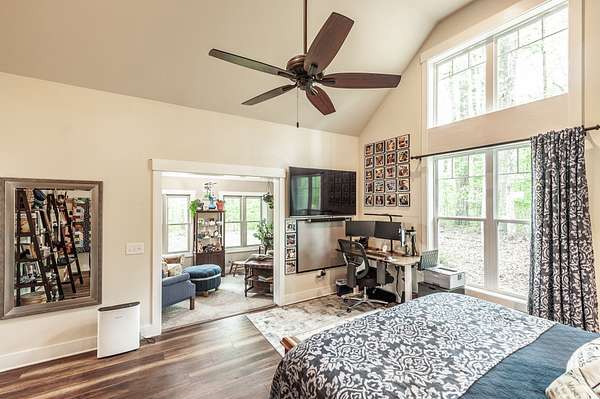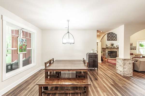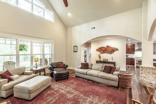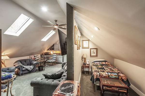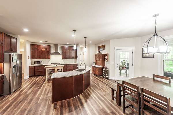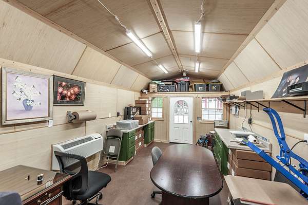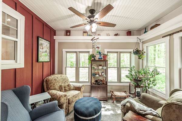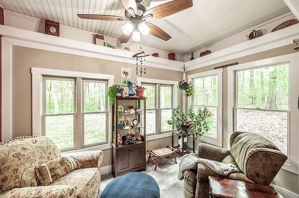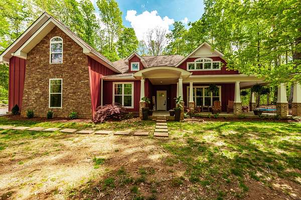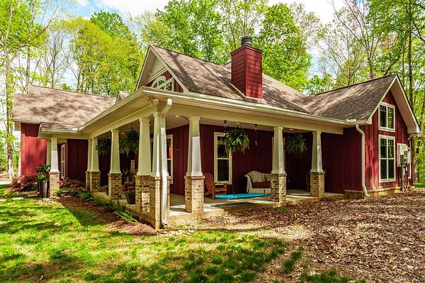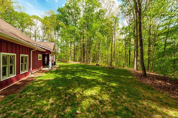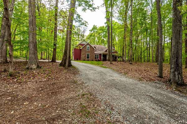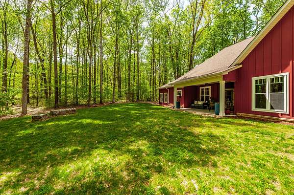 PREFERRED LENDER OFFERING A 1% LENDER CREDIT BASED UPON LOAN AMOUNT AND FREE APPRAISAL. Discover peace and privacy in this beautiful, custom-built home nestled on a sprawling 12-acre wooded lot. This home features a charming covered wraparound porch and patio, perfect for relaxing or entertaining year-round! Open-concept floor plan with soaring ceilings in the living room and a cozy wood-burning fireplace. Four bedrooms and an office that could be a 5th bedroom! The eat-in kitchen is equipped with stainless steel appliances, a gas range, double ovens, a central island, and ample cabinetry and pantry! Primary suite is complete with vaulted ceilings, a private sitting area, a spa-like bathroom with a tub, a walk-in tile shower, and double vanities. Upstairs, a versatile in-law suite or guest apartment awaits, featuring a full bathroom, kitchenette, and skylights! Additional highlights include a 344 sq. ft. workshop with electricity, fresh paint throughout, and plenty of space to build your dream detached garage! A rare opportunity for secluded living with all the modern conveniences!