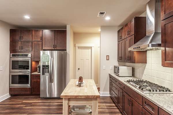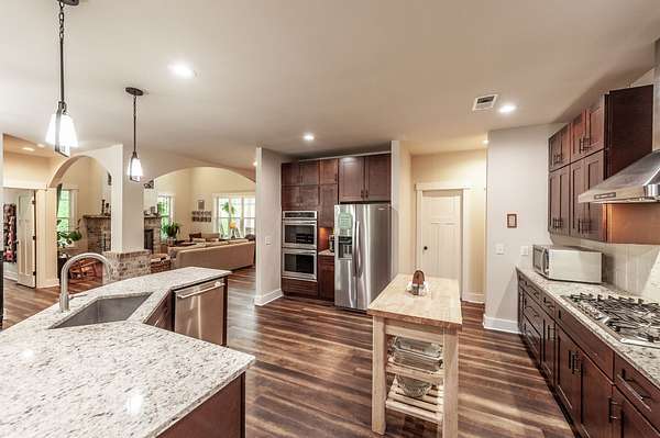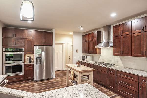 - Built-In Gas Range, Dishwasher, Double Oven, Electric Oven, Microwave, Stainless Steel Appliance(s)