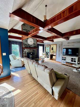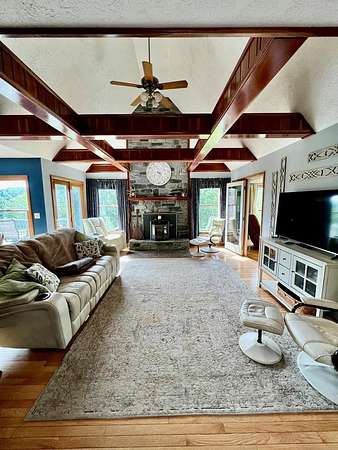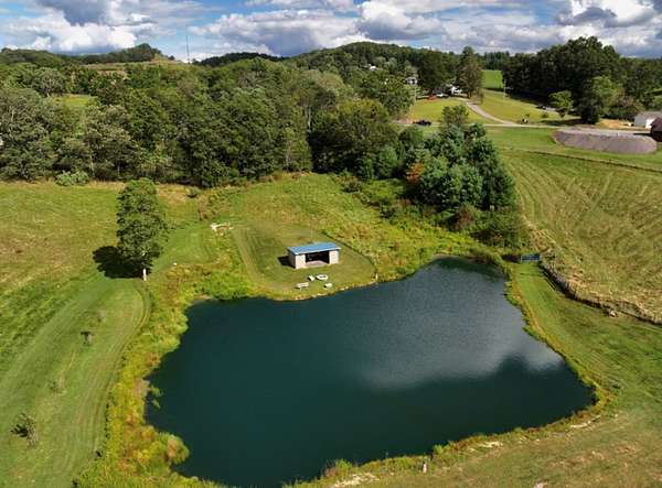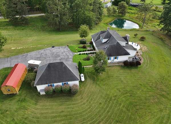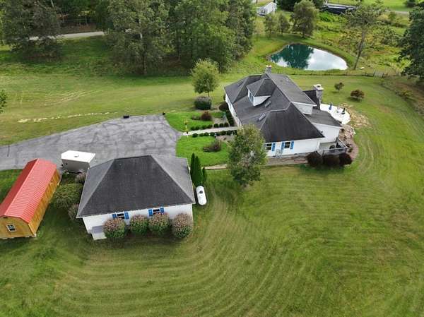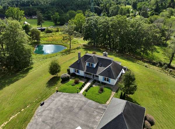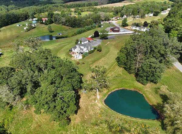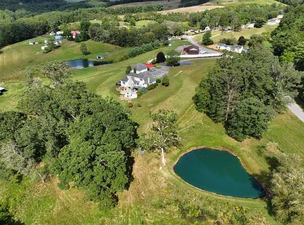 Pristine 14.80 acre farm that is breathtaking! Spacious 2-story home, all hardwoods, custom kitchen, granite , cathedral ceilings, 2 stone fireplaces, cherry beams, solid wood doors, sunroom, gorgeous new patio, basement with canning kitchen, wine cellar, barns, 2 stocked ponds, natural springs, partially fenced, large barn, 2 car detached garage with full storage above, 400 amp power service, Anderson windows, and impeccable landscaping with picturesque mountain views. Property comes with an underground 2.5 acre underground dog fence. Only 10 miles to Shady Spring or Bluestone Lake and Greenbrier River. Endless possibilities.