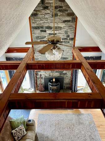- 1 st Floor Bathroom, 1 st Floor Bedroom, Beams, Ceiling Fan(s), Fireplace, Great Room, High Ceilings, Sun Room, Tile Baths, Whirlpool Tub