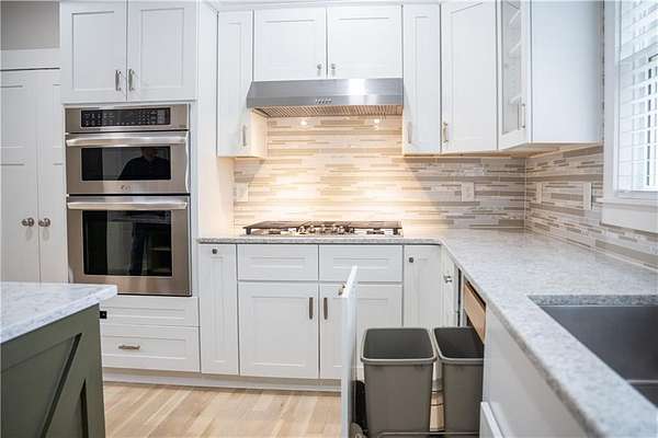 - Dishwasher, Disposal, Double Oven, Dryer, Gas Cooktop, Gas Oven, Range Hood, Refrigerator, Washer