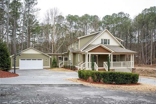 Stunning Farmhouse-Inspired Estate on 2.32 Private Acres with Pond & Lake Views. Welcome to your dream home in prestigious Holly Springs-Canton, GA, where refined craftsmanship meets serene country living. This exceptional farmhouse-inspired estate sits on 2.32 private, wooded acres with peaceful pond views, just moments from Corps of Engineer land, scenic horse trails, and Lake Allatoona. Offering over 4,600 sq. ft., 4 bedrooms and 5 bathrooms, the home features a spacious, thoughtfully designed layout including dual primary suites and flexible spaces for work, play, and relaxation. The main-level primary suite showcases French doors opening to the deck, his-and-hers walk-in closets, a soaking tub, double vanities, and a separate tiled shower. The gourmet kitchen is ideal for entertaining with granite countertops, stainless steel appliances, a built-in oven and convection microwave, and abundant cabinetry, flowing seamlessly into elegant living areas highlighted by versatile durable floors, custom trim and balusters, designer tile baths, and a cozy gas fireplace. A fully finished basement elevates the home with full-scale entertaining space, expansive recreation and media areas, plus a boutique-style private room perfect as a glam suite, custom closet, or creative retreat. Everyday convenience is enhanced by two laundry rooms-one on the main level and one upstairs. Outdoor living shines with a rocking-chair front porch, wrap-around deck, and a private backyard that blends beautifully with nature, while offering exceptional future potential to add a mini-suite or in-law addition, a resort-style saltwater pool, and even a horse barn. Completing the property is a detached 2-car garage with easy kitchen-level access and ample storage. Ideally located near award-winning schools-Sixes Elementary, Freedom Middle, and Woodstock High-and just minutes from dining, shopping, and I-575, this home delivers a rare combination of luxury, privacy, and room to grow in one of Canton's most desirable settings.