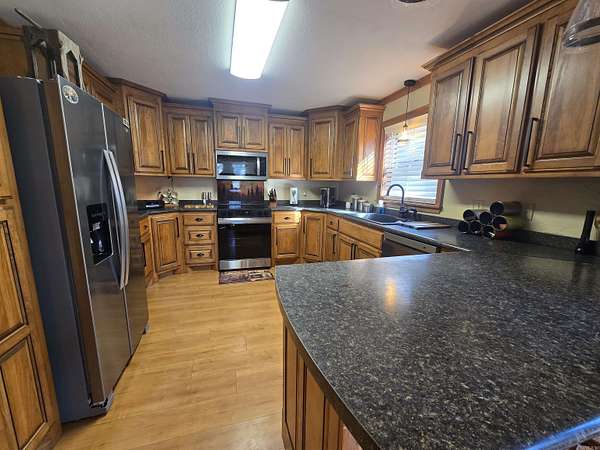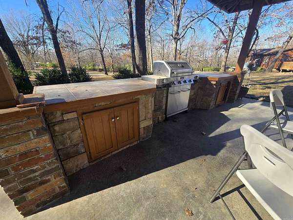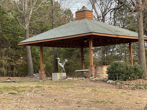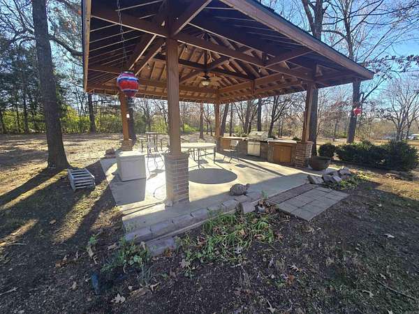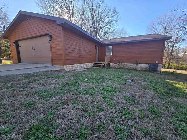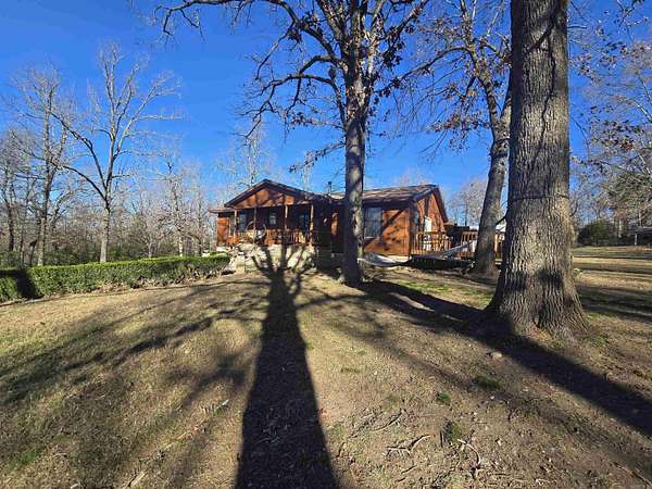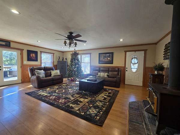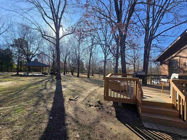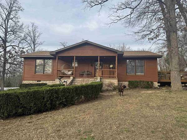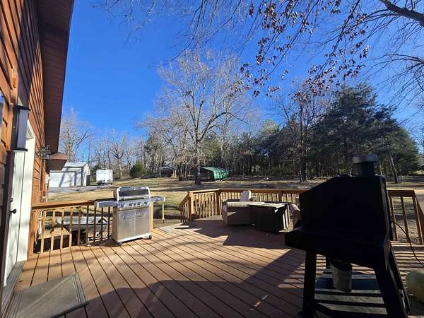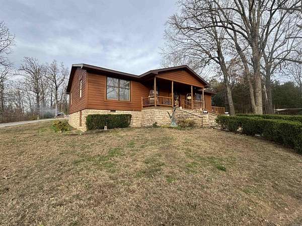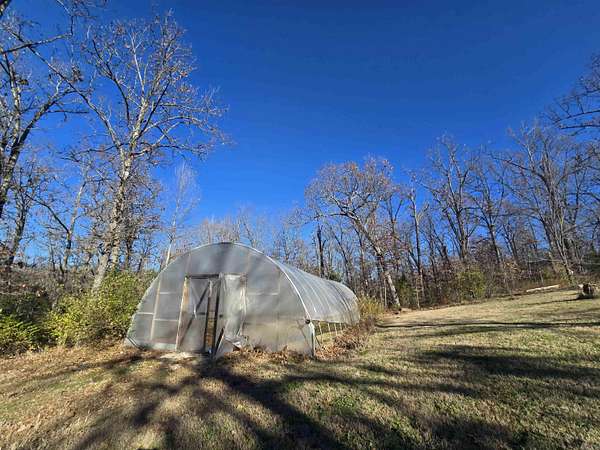Experience a peaceful, park-like setting on 6.3 M/L acres, located less than 10 miles from the White River and Bull Shoals Lake, and under 5 minutes to the Howard Creek access. This well-maintained 3-bedroom, 2-bath home features an inviting open floor plan with beautiful maple kitchen cabinets, a breakfast bar, and all new appliances. The living room offers a cozy wood stove accented by an attractive stone veneer heat shield. An extra-large laundry area provides ample space for a freezer and additional storage. Enjoy outdoor living with a large side deck, a covered front porch, and a covered outdoor kitchen with a dedicated dining area. The updated bathrooms include a spacious walk-in shower in the primary suite. Outside, the property includes an Arkansas-style cabin that could serve as a playhouse or be finished as a guest space, a chicken/bunny house, and a commercial-size greenhouse. Surrounded by mature trees for added privacy. Offered at $449,900