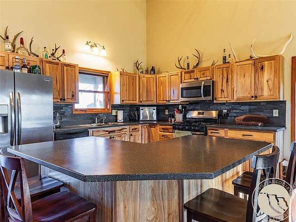 Embrace breathtaking views with this exceptional 3-bedroom, 2-bathroom home with a detached 2-car garage. Designed for comfort and functionality, the open floor plan boasts a 22' vaulted ceiling and upstairs loft. Step outside to your beautifully landscaped backyard, complete with a rock fire pit and horseshoe pits-perfect for entertaining or enjoying the magnificent vistas of the Beartooth Mountains. Ideal for horse enthusiasts, this property includes a 12x20 horse shelter with an attached dry lot for hay storage. The fencing features a combo of rustic wood rail and 4-strand barbed wire, two horses allowed on properties over two acres. Plus, the buyer has the exclusive opportunity to purchase the adjacent 2.7-acre lot, expanding your oasis to a fully fenced 5.2 acres! This property boasts a high-producing domestic well and is conveniently located between Red Lodge and Billings.