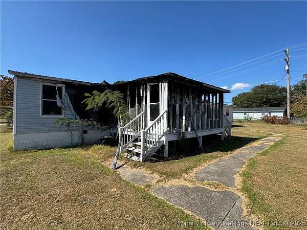 Est $666/moTwo adjoining lots/parcels for sale in Hoke County. Lots total approximately .8 of an acre. There is a manufactured home on the property that was severely damaged by a fire and it will remain with the property. The Sellers will not remove it and the property is being sold as is where is! DO NOT ENTER THE HOME AS IT IS NOT SAFE. There is military noise, farms, and water treatment plant in the area. Property includes an outbuilding with a bar area, booths, and a half bath that would be great for family functions! Property has fencing, water, septic, and lots of potential!