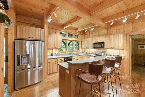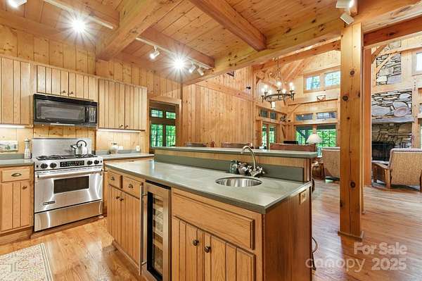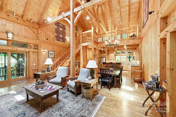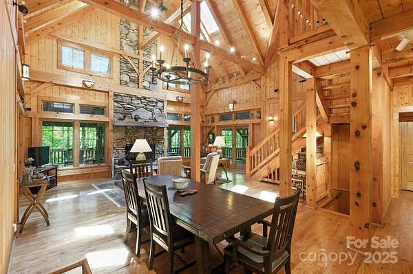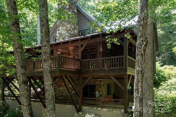 PRICED at APPRAISED VALUE! Back on market at no fault of property - buyer's circumstances changed right before closing. Inspections etc. are available for review! Stunning and private Timberpeg post & beam home on 3 acres along the gorgeous South Toe River, just over an hour from Asheville. This breathtaking property offers approx. 275ft of river frontage, your own waterfall, and a fantastic wrap-around deck overlooking the river. Perfect for entertaining, the home features spacious indoor-outdoor living, soaring ceilings in the living room, and a beautiful wood-burning stone fireplace. The main level has an open floor plan with a primary suite with direct deck access, a guest room with a nearby bath, and laundry. Upstairs includes a loft with built-ins and two ensuite bedrooms, while the spacious basement offers bonus rooms, a full bath, an additional living room, and a concrete patio also overlooking the river. Located in a small gated section of this community, it's ideal for a second home or quiet full-time living. Home may be purchased furnished, a true turn-key opportunity. Just 30 min. to Burnsville's groceries, shops, and dining.