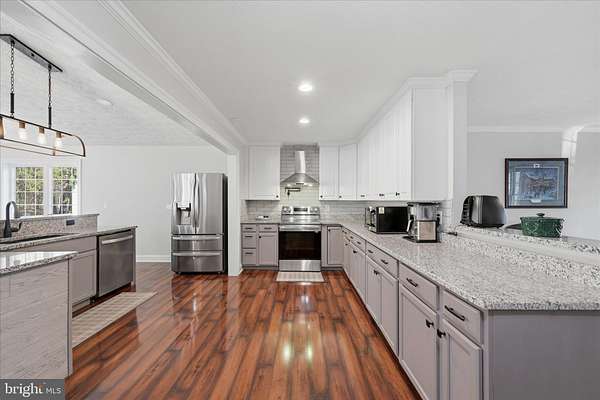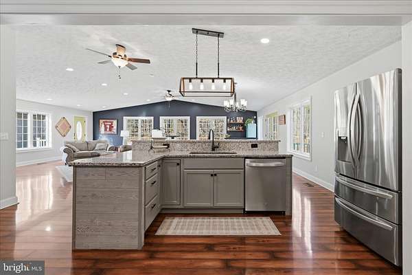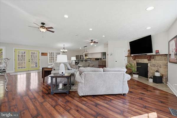 Come home to your private unrestricted 5 acre oasis!! Enjoy the 4 wheeler out on established trails, take target practice or just stroll thru the woods, your options are endless. Serene yet convenient location, less than 1.5 miles to I-81 and 10 minutes to shopping and restaurants. 4 bedroom, 2.5 bath rancher with spectacular, open and bright 33' X 33' addition which includes modern gourmet kitchen, stone fireplace with mantel (set up for gas or wood pellets), half bath and great room. Primary suite and all bathrooms renovated, 2 detached garages (one 24' X 24', other 24' X 40' with office) with oversized doors and separate electric services and a large covered front porch with ceiling fans are among the many desirable features you will find. All new carpet in bedrooms, new refrigerator (with 2 icemakers!!), refreshed floor insulation and recently pumped and inspected septic. Priced less than January, 2025 appraisal, the owners' pride in this home is evident. Schedule your showing today!!.