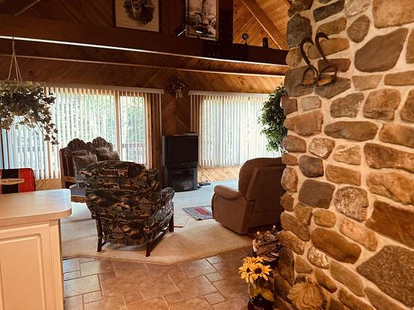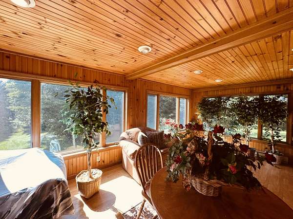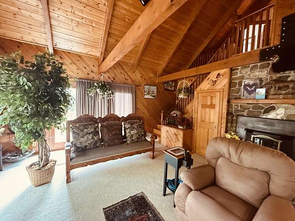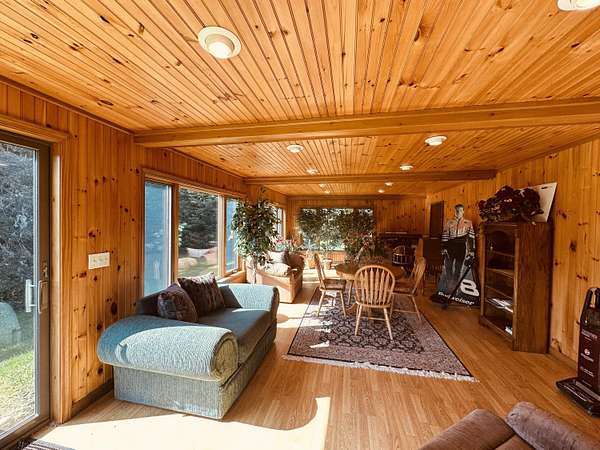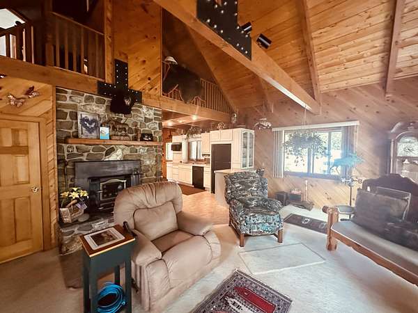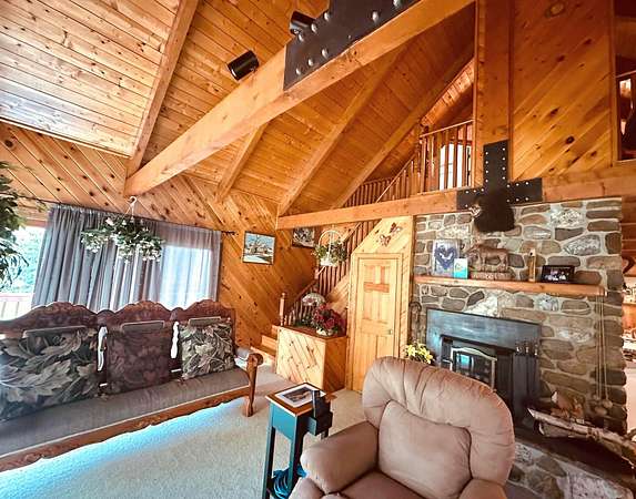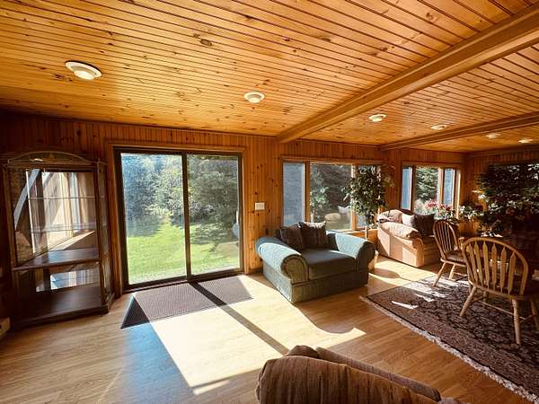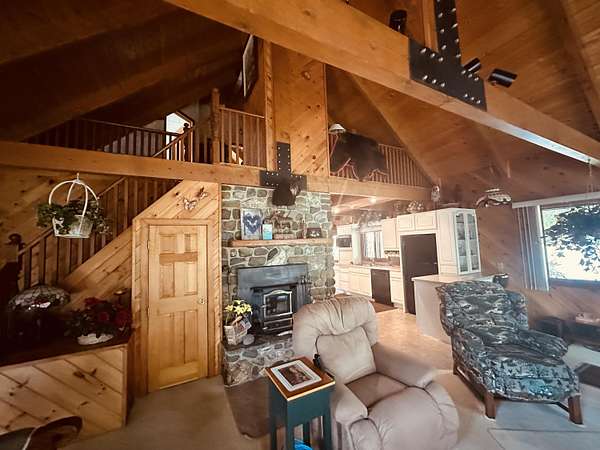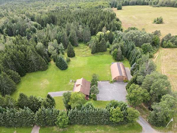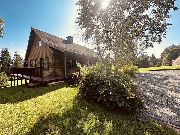 Have You Ever Dreamt of Owning a Piece of Paradise! Tucked away in a Lush, Wooded Haven! Well, your Dreams just might come true with this Stunning Custom Log Home Nestled within 102 Mostly Wooded Acres. And that's just the Start!! Complete with a Finished Basement, a 40 x 60 Heated Quonset Hut with an Attached Sunroom. a Large Deck, A front Porch and Extraordinarily Designed Landscape that Accents the Overall Aesthetics. Impressed Yet? Wait until you hear about the Interior! As the Heart of the Home, This Kitchen Leaves nothing to Desire. It's Not just the Functional Layout that will get your Attention. Ample Storage Space, Modern Kitchen Appliances and Smart Design. When you think of a Large Living Room with a Stone Fireplace doesn't it evoke images of Cozy Evenings! A touch of Rustic Elegance with the Knotty Pine throughout the Home makes this Living Space even more Inviting! What's better than an Extra Space that you can Convert into a Rec Room, A Home Gym or a Guest Suite. This Finished Basement comes equipped with a Pellet Stove, Full Bath, Laundry Room, and a Bedroom. The Outdoors of this Property is just as Impressive as the Interior. Picture yourself spending Sunny Afternoons in the Attached Sunroom or On the Large Deck Overlooking the Gorgeous Land! This is your Chance to Untangle from the Hustle and Bustle of City Life and Revel in the Peace and Serenity of Nature! So, Why Wait? Make this Beautiful Log Home yours and Build Unforgettable Memories. In the End, isn't that what truly Makes a House a Home!! BONUS!! Property Comes Mostly Furnished!
