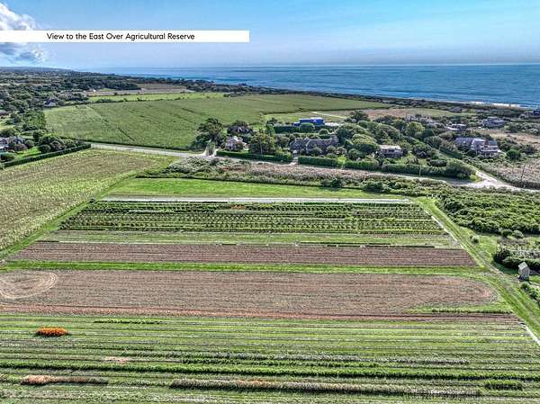 Looking for a special sought after location that offers sweeping panamoric views of ocean beaches, pond, and farmfields? Then look no further! New to market, this 1.66 acre land parcel, with approved building envelope, borders a 23 acre agricultural reserve with vistas of 40 acres of farmland to the east, 21 acres of reserve along the Atlantic to the south, and is adjacent to a 1.7 acre Peconic Land Trust reserve with views of 55 acres of Peconic Land Trust properties to the west. Owner has obtained all permits from the DEC, Southampton Conservation Board and Suffolk County Health and the approvals from the Village of Sagaponack Zoning Board of Appeals and Architectural Review Board. The floor plans and elevations for a 2000+ square foot two story residence with pool and garage were created by Lori Fontana of the award winning firm McDonough and Conroy Architects. Raised to meet FEMA standards, the first floor is designed for easy living and entertaining with an open plan kitchen, dining, and living area with fireplace. The second level has a luxurious primary suite and two additional bedrooms, each with their own baths. The roof top deck with swimming pool offers unparalleled breathtaking views. Rare opportunity to purchase this one of a kind property located only 4 minutes by car to Sagg Main Beach and moments to the best farm stands, renowned wineries, fashionable boutiques, and sought after restaurants in the Hamptons. Carefree living at its best. $4,200,000