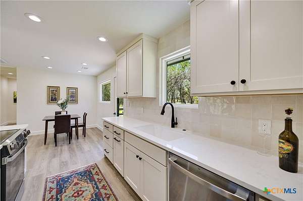 STR's allowed. This beautifully renovated home has been taken down to the studs and thoughtfully rebuilt, blending modern convenience with rustic charm. Nestled on 2.5 acres, the property features a durable standing seam metal roof and new siding for low-maintenance living. Step onto the inviting covered front porch and into a warm, open-concept interior. Wood floors flow throughout, and the living room is anchored by a cozy fireplace flanked by custom built-ins. The split-bedroom layout offers privacy, while a dedicated office provides a perfect space to work from home. The kitchen is outfitted with stone countertops, stainless steel appliances (including refrigerator), and a large pantry/laundry combo for added functionality. Both bathrooms are beautifully finished with high-quality touches and materials. Enjoy the peaceful surroundings from your private back deck. Light restrictions allow for flexibility, and the property features a shared driveway and well. A move-in ready retreat with charm, style, and room to roam!