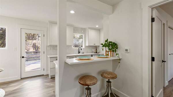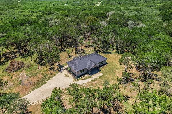 This beautifully renovated home has been taken down to the studs and thoughtfully rebuilt, blending modern convenience with rustic charm. Nestled on 2.5 acres, the property features a durable standing seam metal roof and new Hardiplank siding for low-maintenance living. Step onto the inviting covered front porch and into a warm, open-concept interior. Wood floors flow throughout, and the living room is anchored by a cozy fireplace flanked by custom built-ins. The split-bedroom layout offers privacy, while a dedicated office provides a perfect space to work from home. The kitchen is outfitted with stone countertops, stainless steel appliances (including refrigerator), and a large pantry/laundry combo for added functionality. Both bathrooms are beautifully finished with high-quality touches and materials. Enjoy the peaceful surroundings from your private back deck. Light restrictions allow for flexibility, and the property features a shared driveway and well. A move-in ready retreat with charm, style, and room to roam!