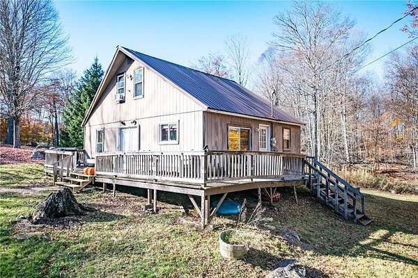 Welcome to your Catskills escape on sought-after Hubbell Hill! Nestled between Margaretville and Roxbury-and less than 10 minutes from Belleayre and Plattekill Mountains-this charming 4-bedroom Cape blends cozy comfort, privacy, and convenience in one of the area's most desirable communities. Down a quiet country lane, this beautifully reimagined home sits on peaceful, wooded acreage with meadows, natural rock formations, and a private walking trail. Step inside to a bright, inviting interior where sunlight pours through large windows, highlighting warm wood floors and a relaxed, open layout. The living room, accessed through French doors, opens to a wraparound deck perfect for morning coffee or starlit dinners. The kitchen features newer appliances, thoughtful built-ins, and space to gather and cook with ease. A soothing full bath with marble flooring and custom vanity complements two comfortable first-floor bedrooms, while two spacious upstairs bedrooms share a convenient new half bath. A metal roof adds timeless charm and durability-there's nothing quite like the sound of gentle rain on a summer evening. Located on the top of Hubbell Hill, this home offers complete tranquility yet sits minutes from shops, dining, a grocery store, and CVS. Broad Acres, a nearby cul-de-sac community, adds to the friendly, family feel of the area. Whether you're seeking a full-time home, weekend getaway, or smart short-term rental investment, this turn-key retreat delivers mountain living at its best-private, peaceful, and perfectly placed to enjoy everything the Catskills has to offer.