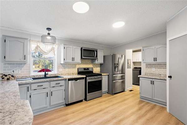 Here's a great opportunity, a recently remodeled single-level home set on 7.29 acres with a charming man-made pond that could be filled up for swimming, wooded trails for hiking or ATV, and a gazebo & patio, creating an inviting outdoor retreat. The spacious layout offers 4 bedrooms and 3 bathrooms, including an owner's suite with a full bath and walk-in closet.