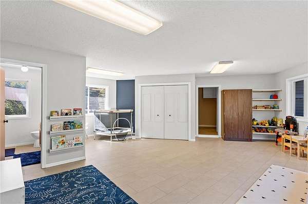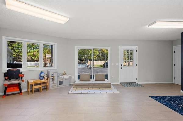 The large entryway connects the house to the garage, which is currently used as the kids' zone & mudroom. There are two additional family rooms, and a versatile in-law suite with private access, its own kitchen, and a connection to the 1280 square ft oversized heated garage.