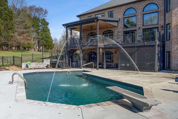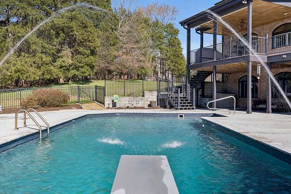 Step outside to a gorgeous in-ground pool with a diving board, ideal for entertaining or relaxing while taking in the peaceful surroundings. Situated on a unique peninsula overlooking a quiet cove, this property offers excellent fishing just steps from your back door.