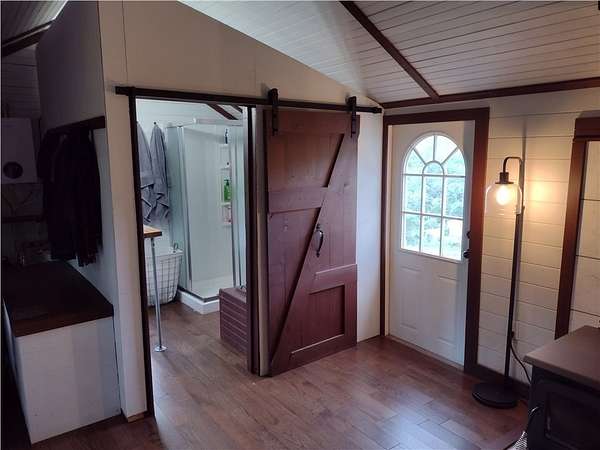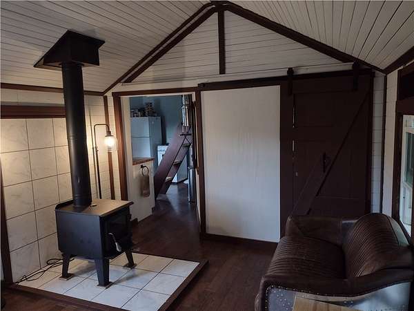 This 23-acre fully fenced retreat combines absolute privacy, luxury comfort, and true off-grid independence with million dollar Blue Ridge mountain views, 27-tree fruit orchard, significant creek frontage, next to a National Forest. Sold fully furnished and turnkey with fully functional, year round, off-grid systems. The main cabin has been completely remodeled as of August 2025; Its custom-built with premium finishes &entirely solar powered. Custom finishes include 3/4" tawny oak floors, spruce walls&ceilings, custom butcher block counters&trim, butcher block dining table, sliding barn doors, &bamboo blinds. +500-G rainwater collection system +2960W Solar Panel System&MPPT Charge Controller +Cut firewood for about two winters +Full-size 3-way silent refrigerator (DC, AC, or propane) +Champion 10,000W dual-fuel (gas or propane) standby generator &custom generator-to-house switching station Remarks Landscaping-fenced for cattle Water supply-storage Sewer-leech fields Internet-hotspot