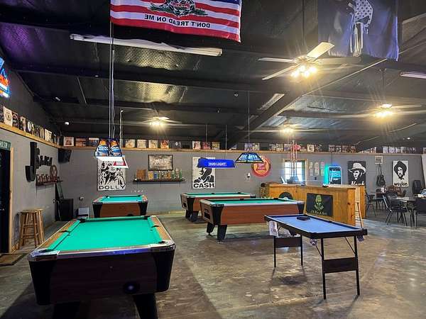 Est $4,084/moONE OF A KIND IN CENTER! Thriving Local Bar! 3180 sq ft bldg, has commercial ice maker, walk-in cooler, kitchen with stove & refrigerator, 2 public restrooms, office w/private restroom, tables/chairs/barstools, neat exterior eating/drinking area, covered-screened in rear area. Large parking lot. Current Owners grill and cook inside rear covered area. (Cooking equipment and Decor not included). Situated on 1 acre lot!