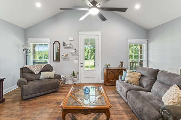 The living area is warm and inviting, ideal for both everyday comfort and hosting friends and family. Outside, the flat acreage, covered porch, and detached shop provide the space and flexibility you've been looking for. With an attached two-car garage and plenty of room to spread out, this home blends comfort, function, and rural charm just minutes from town.