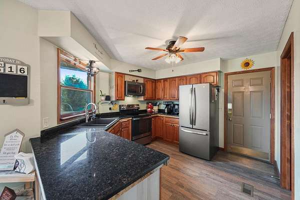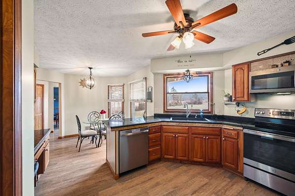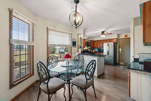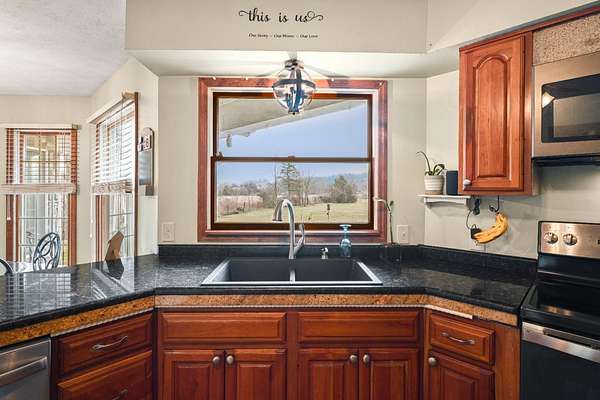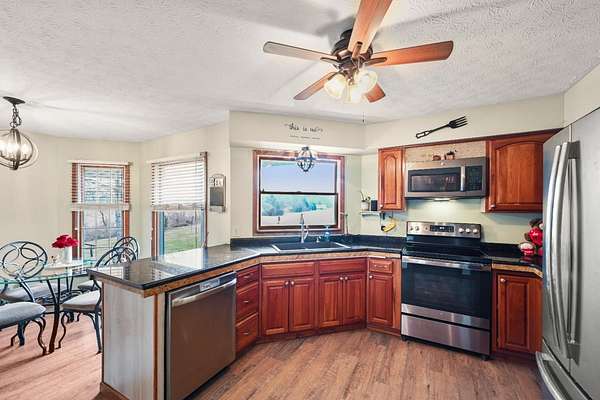 Est $2,382/moExecutive style 3 bedroom 2 full bathroom brick lined 5 acre estate. Enjoy two floors of living space including a basement walkout to a +- half acre pond stocked with fish. Stove/oven, refrigerator, and dishwasher are only 3 years old. Roof is 2 years old. Granite kitchen countertops. Master bedroom walk in closet is cedar lined. Second full bathroom has a Jacuzzi tub. Enjoy your hobbies in the 2 car detached garage. Call today for your private showing.