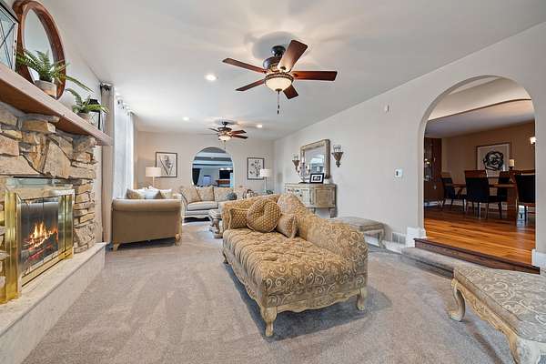 This estate is a true masterpiece of luxury, comfort, and privacy-nestled on nearly 11 meticulously landscaped acres. Offering over 10,000 square feet of beautifully designed living space, the residence combines timeless elegance with thoughtful functionality. A gated entrance leads to this private sanctuary, which features a heated six-car garage and two fully equipped guest apartments-ideal for extended stays or multigenerational living. The main home includes a spacious main-floor bedroom suite for added convenience. Two sprawling living rooms offer abundant space for entertaining and relaxation, one featuring a built-in bar. A formal dining room sets the stage for elegant gatherings, while a charming breakfast room offers a more casual spot to enjoy morning meals. The gourmet kitchen is designed for the discerning chef, equipped with a full-size Sub-Zero refrigerator and freezer, two dishwashers, and a professional-grade six-burner range with griddle. The showstopping master suite spans an impressive 38' x 37' and includes a private balcony, tanning room, fireplace, and three massive walk-in closets. The luxurious master bath is outfitted with spa-quality finishes, creating a private retreat. Additional interior highlights include a state-of-the-art theater room with a 12-foot screen, a game room with hot tub, a cozy sitting room with built-in bar, a well-equipped exercise room with professional flooring, a bright Florida room, and an executive office filled with natural light. The outdoor amenities rival those of a private resort. A heated in-ground swimming pool and spa house provide the ultimate relaxation, while resurfaced tennis courts (2024), decorative fountains, a charming gazebo, and a 30' x 50' heated pole barn offer year-round enjoyment. The estate is fully fenced and secured with an advanced security system, ensuring both privacy and peace of mind. Recent upgrades include new roofs on all structures (2022/2023), gutters and soffits (2023), all air conditioning units replaced (2024), furnace rebuild (2019), water heater (2022), and a new driveway (2023). Interior updates include new carpet (2024), luxury vinyl tile flooring (2024), updated kitchen lighting, and newly upgraded pool equipment (2024) with a liner installed in 2023. Even the cedar shed received a full update in 2024. Set well off the main road behind stately gates, this extraordinary estate offers a rare opportunity to enjoy refined living in a truly private and serene setting.