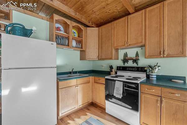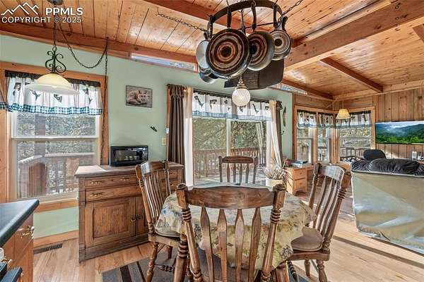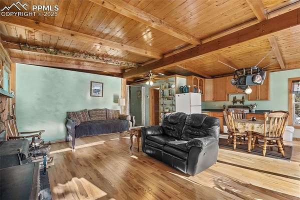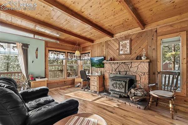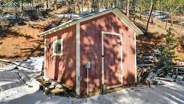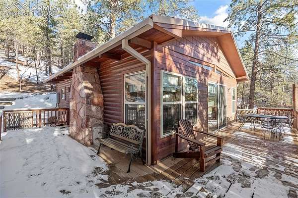 Well-maintained cabin in the gated community of Rainbow Falls Park North, surrounded by National Forest. Year-round water, electricity, high-speed internet, phone service, and snow-plowed access at a mild 6,400 ft elevation. Interior features 1 bedroom, 1 full bath, an additional multi-use room (laundry/sleeping/storage), wood stove, forced-air propane heat, on-demand electric water heater, new hardwood oak floors, and a refinished steel bathtub (2023). The 3.3-acre wooded lot offers ponderosa pines and plenty of level parking and privacy. Wrap-wround spacious, sunlit composite deck. The subdivision includes private stocked fishing ponds with boat ramp, park and trail system, abundant wildlife, and a quiet mix of part-time and full-time neighbors. Other extras include new metal roof with super-insulated attic, underground electric and telephone lines, greenhouse with electrical service, and a tool shed with electrical service. New septic tank scheduled for installation in 2026. Don't miss your opportunity to live the Colorado mountain lifestyle in this exclusive and highly sought after community.