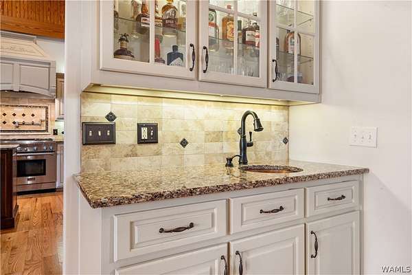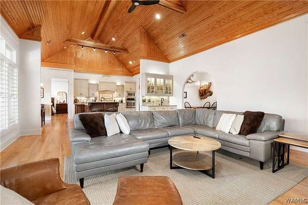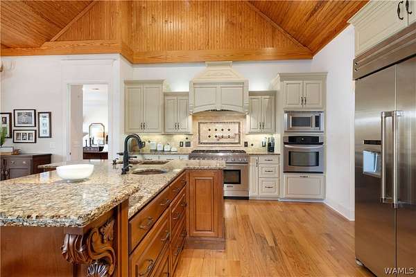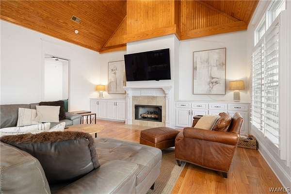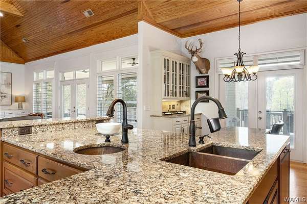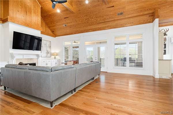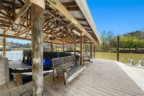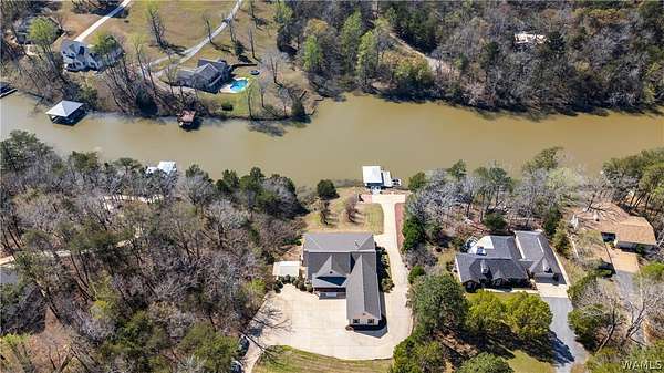 Lake Tuscaloosa living at its best! This home offers easy water access and features four spacious bedrooms, each with a full bath-two on the main level and two on the lower level. The lower level serves as a separate apartment with a full kitchen, dining area, and living space with fireplace, all overlooking the lake. The main kitchen includes a Thermador range, Sub-Zero-style refrigerator, freezer drawers, and ice maker. Additional features include a three-car garage with drive-through doors, a path to the water, and a dock with lift and outdoor fireplace. Schedule your showing today!