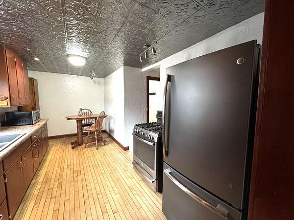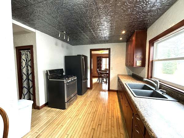 Exceptional opportunity in Lakewood WI. Never on market. Property extends beyond home, garage, large shed and rests on 7.67 acres. Direct access to the Nicolet State Trail with multi-use ATV/UTV, snowmobiles and more. Design to your likeness this property is 1 bed, 1 bath and over 2,000 combined sq. ft. Complete with appliances, central air, first floor laundry, and maple hardwood flooring. Kitchen has tin ceiling and space extends into dining room. Ample size living room, bedroom, bath, laundry, mud room, and porch all on main floor. Second floor is open to your vision. Basement is authentic to age of home, with root cellar, and 18'' stone walls. Once a farm, could be sustainable farmette, seasonal get away, or permanent homestead. Bring your toys, bring your vision. RV parking.