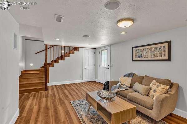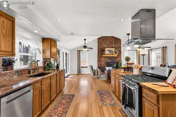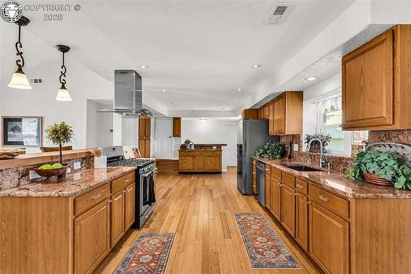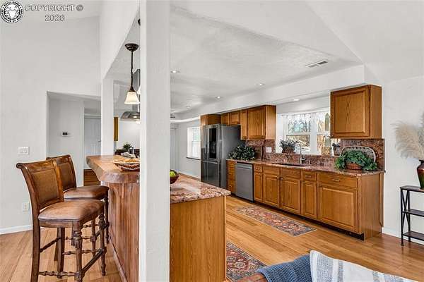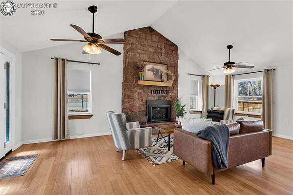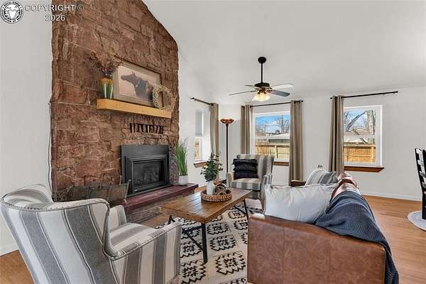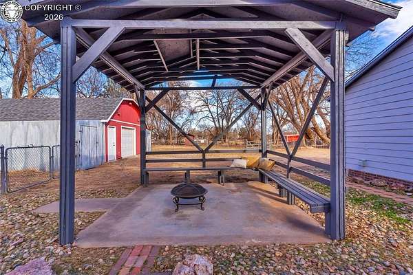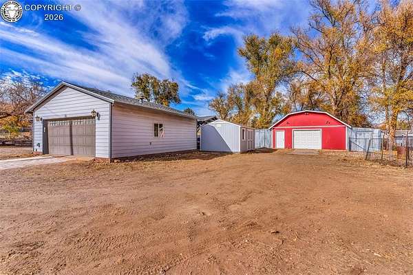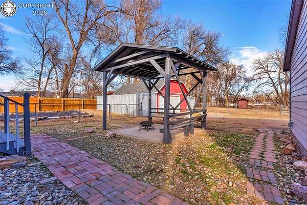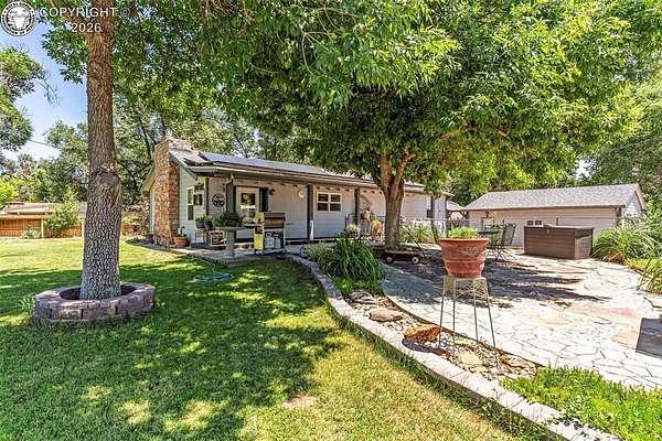 Move-in ready, well-maintained 4-bed, 2.5-bath home on 2.06 acres with 2,256 sq ft of finished living space, ideal for a hobby homestead. Located on a quiet street, this cared-for property offers convenient main-floor living, a cozy gas fireplace, and paid-off solar panels serving the home, keeping electric costs exceptionally low. Two furnaces provide zoned heating for year-round comfort. The primary bedroom features a private walk-out with beautiful sunrise views of the back property-perfect for enjoying morning coffee under the gazebo. The walk-out basement includes a family room, three bedrooms, and a full bath. The property includes 12 shares of DeWeese Ditch water, a holding pond to support irrigation, and convenient outdoor spigots for animal and yard water. Enjoy a large covered patio, fenced acreage, three sheds, a two-car garage, plus a one-car garage or shop. Class 4 storm-rated roofing installed on the home and all outbuildings in 2024. Zoned for horses, goats, and chickens.