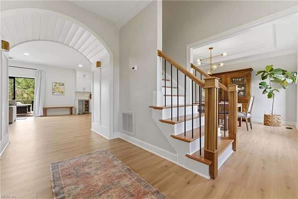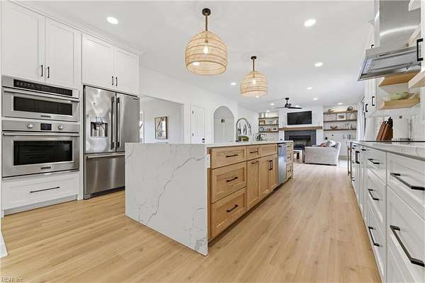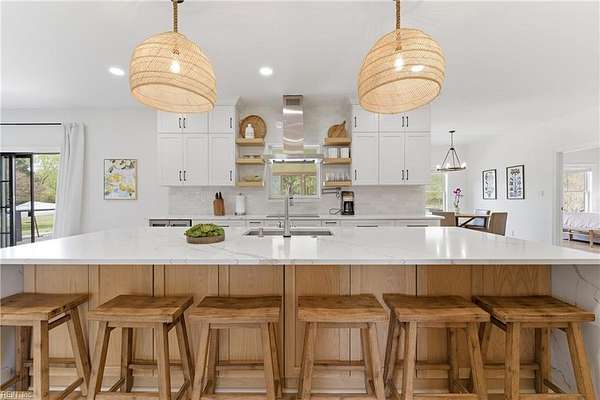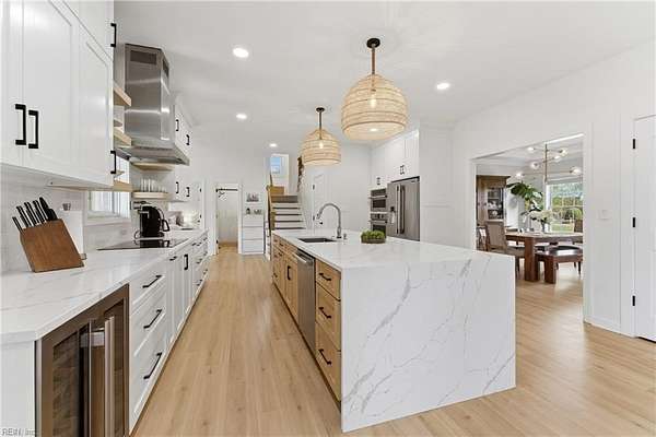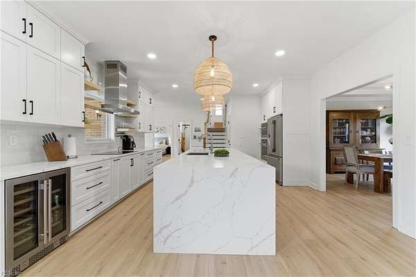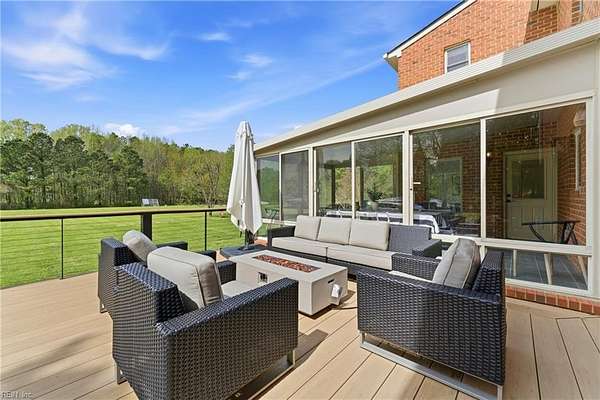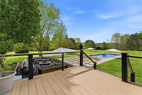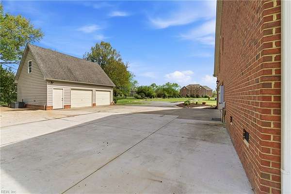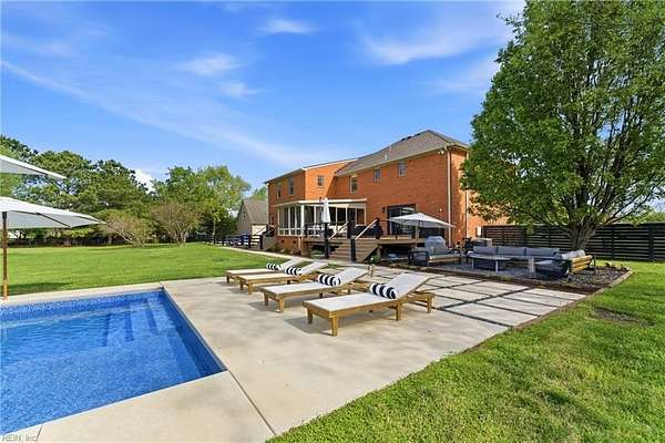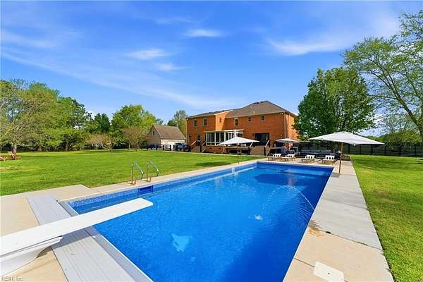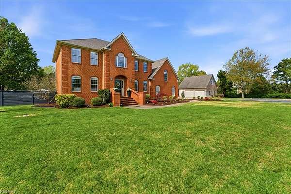 Experience refined country living in Chesapeake's sought-after Hickory community. Situated on 3 acres and in a quiet low traffic neighborhood, this custom brick residence offers nearly 3,800 sq ft of beautifully updated living space. The spacious eat-in kitchen features a large waterfall center island, breakfast bar seating, and flows seamlessly into the main living areas, great for everyday living and entertaining. The living spaces are filled with warmth, highlighted by a gas fireplace and natural light. Multiple bonus rooms and flexible spaces provide options for home offices or recreation. Step outside to a private retreat with a composite deck, in-ground pool with automated cover, and fenced grounds, amazing for relaxing or hosting. Dual garages with an EV charger, abundant storage, and space for boat or RV storage adds convenience. Located minutes from dining, shopping, and interstate access, this home offers the perfect balance of quiet country living and accessibility.