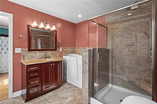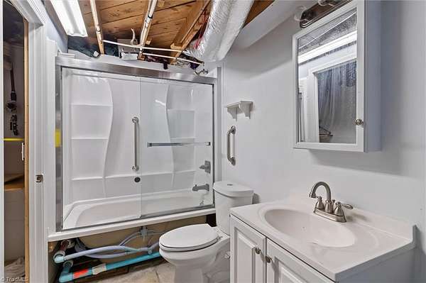 Beautiful 2BR/3BA Home in City Limits, approx. 1 mile to Downtown Mount Airy. This property has an ample 1.66+/- Acres with frontage on Pittman Street and S. Main St.! (Billboard fronting S. Main is believed to be on this property and neighboring property, both this property and owner are sent $50/year in Billboard lease fee) Updated Kitchen and Updated Main Level bathrooms (primary has large walk-in closet/dressing room)! Basement has more storage and space with a 3rd bathroom that was started but not completed (Permitting Unknown). Beautiful Sunroom 268+/- sq.ft. not included in htd. sq. ft. total but is beautifully finished with recess lighting and walks out onto Deck with built-in awning! All appliances including washer and dryer and all flat screen TV's remain! Basement garage, 1 car carport, Storage Building and so much more!