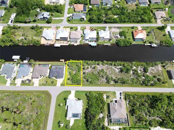 Waterfront property in the exciting boating community of South Gulf Cove, a prime location for designing a custom home tailored to your family's desires. This exquisite lot boasts an expansive 80 feet of canal frontage, offering breathtaking views and a connection with nature, complemented by boundless boating adventures. Envision tranquil evenings by the water's edge and waking up each morning to stunning views. South Gulf Cove is a deed-restricted, boating-centric community with an optional annual HOA, featuring public boat ramps, clubhouse and access to 55 miles of canals and the open waters of Charlotte Harbor, Intra-Coastal Waters and the Gulf. Experience the Florida lifestyle with top-tier golfing, thrilling boating, exceptional fishing, and the enchanting allure of nearby beaches. Immerse yourself in a vibrant community life where adventure and relaxation await at every turn. We work with builders in all price ranges, Let South Gulf Cove be the setting for your new coastal life. See the county GIS photo, Most of this lot has a natural elevation of 7ft which helps to reduce the elevation cost to build.